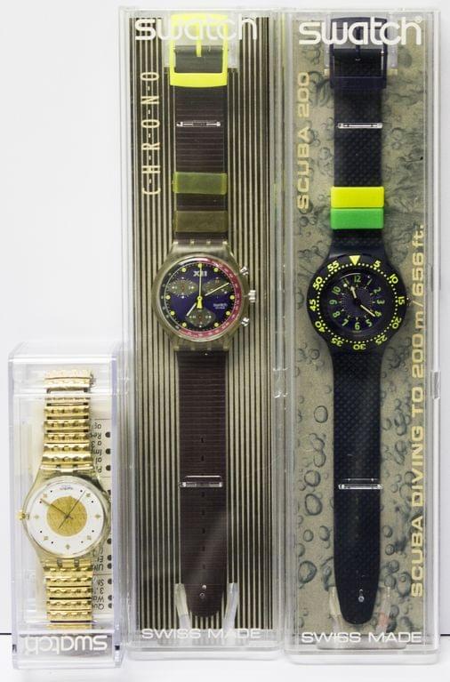 Lot de 3 montres, dont une Scuba Rowing, une Chrono Blue Chip, une Gents and Ladies Gold Waliz