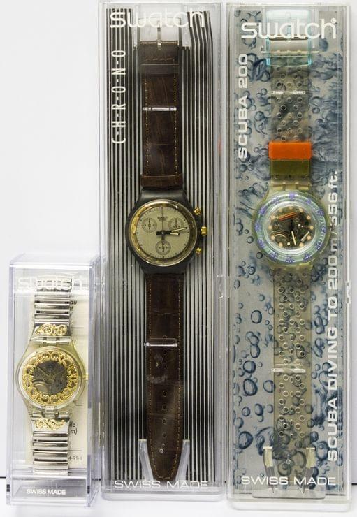 Lot de 3 montres, dont une Scuba Jelly Bubbles, une Chrono Goldfinger, une Gents and Ladies Asetra