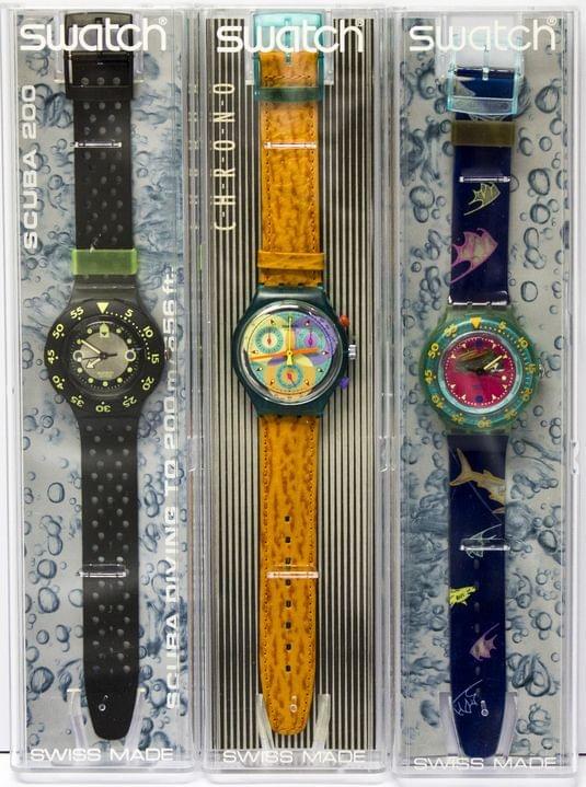 Lot de 3 montres, dont une Scuba Shamu/Black Wave, une Scuba Happy Fish, une Chrono Sound