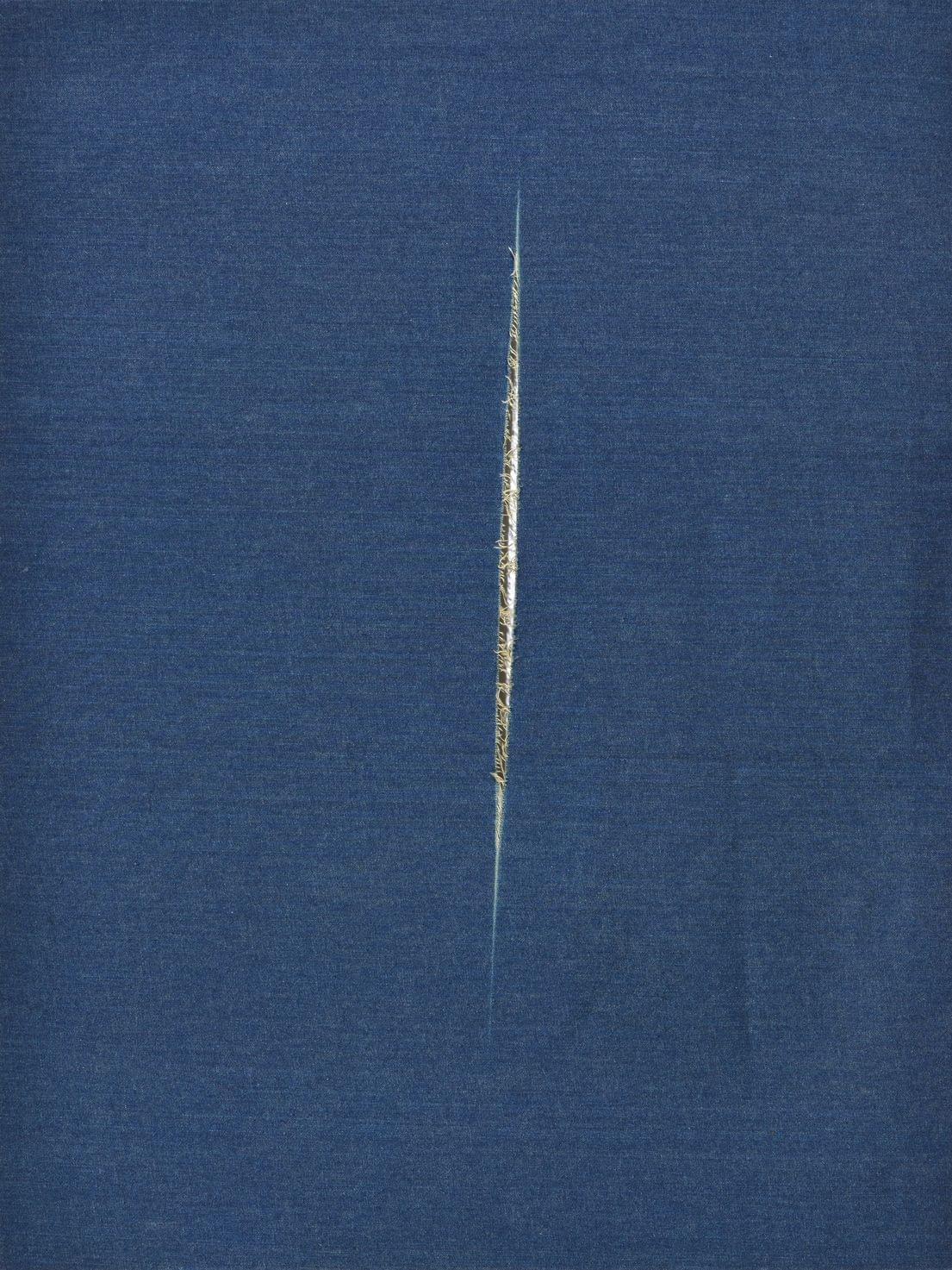 Concetto Spaziale 1996, toile denim signée, intitulée et datée au dos, 120 x 90 cm