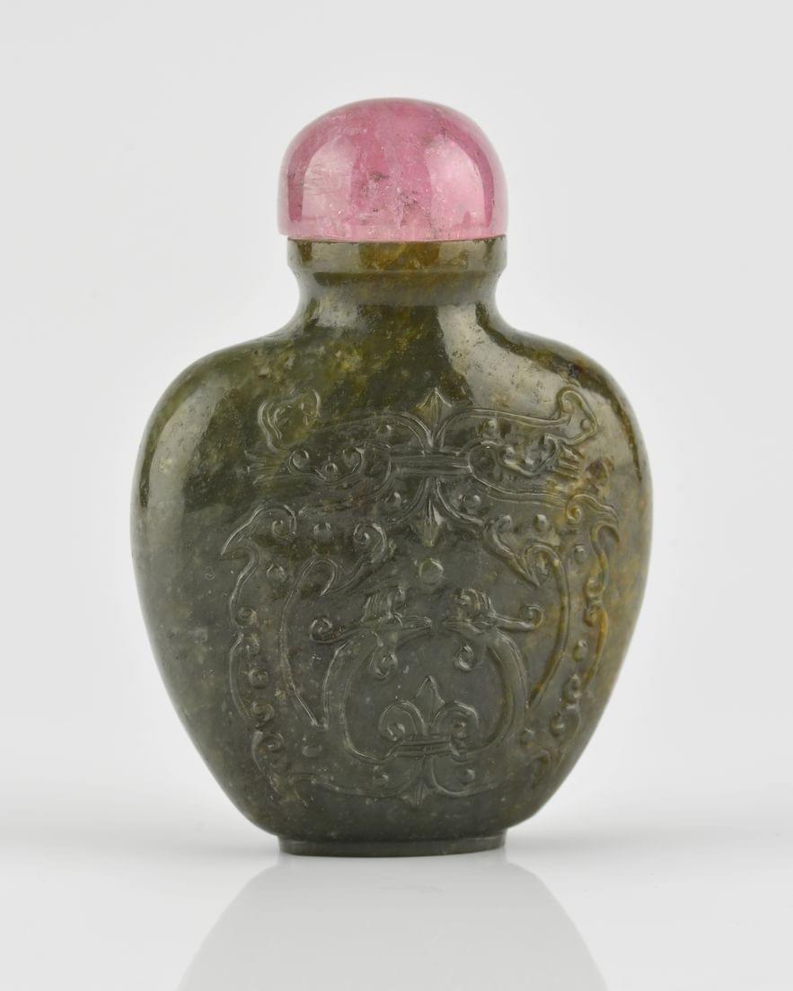 Jade, Jadéite, sculptée sur les deux faces de phénix en léger relief, H 7 cm