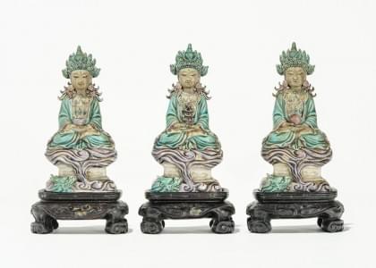 28. Suite de trois guanyin assises, Chine, dynastie Qing (1644-1912)
