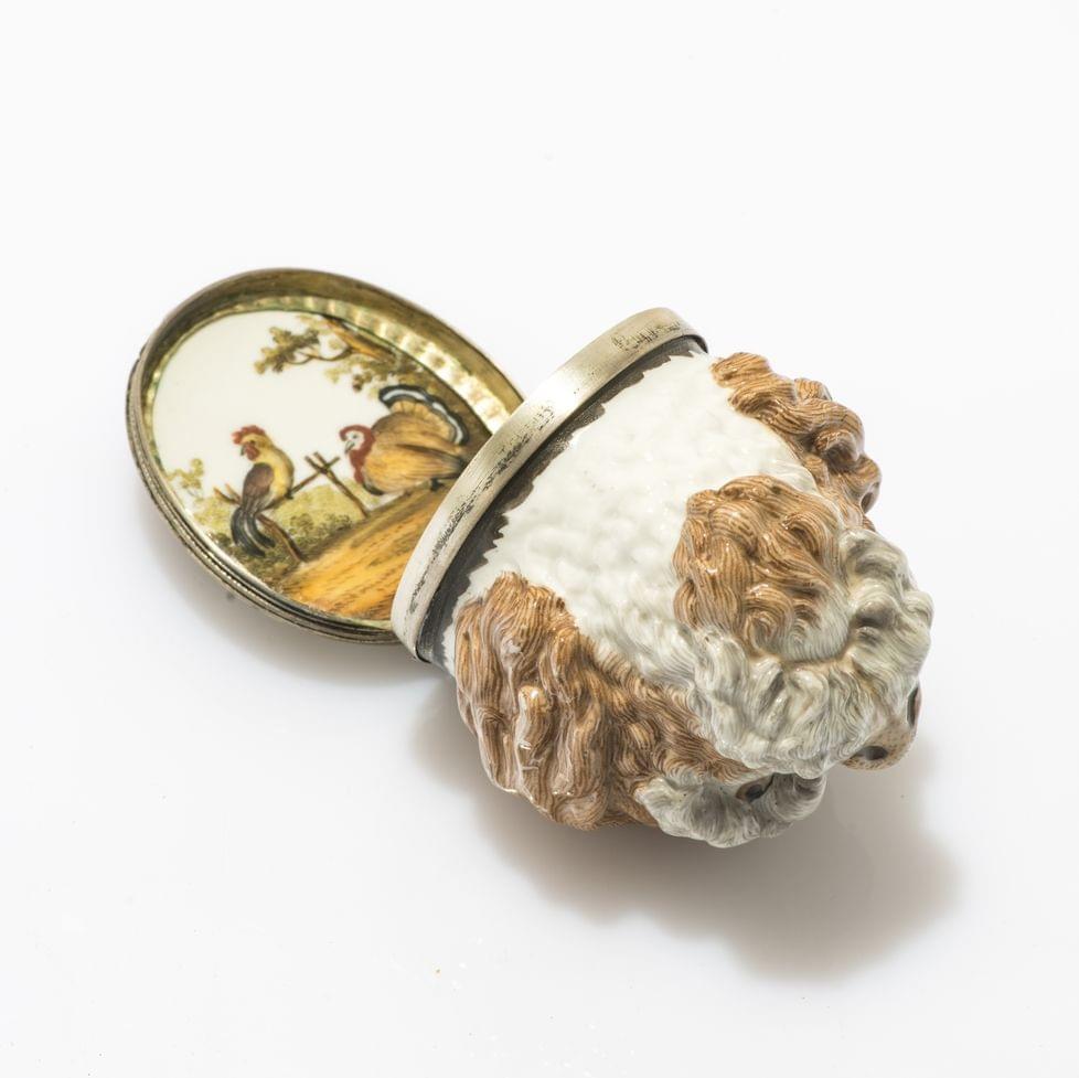 77. Tcharka unie à anse ajourée formée de rinceaux entourant une têt...