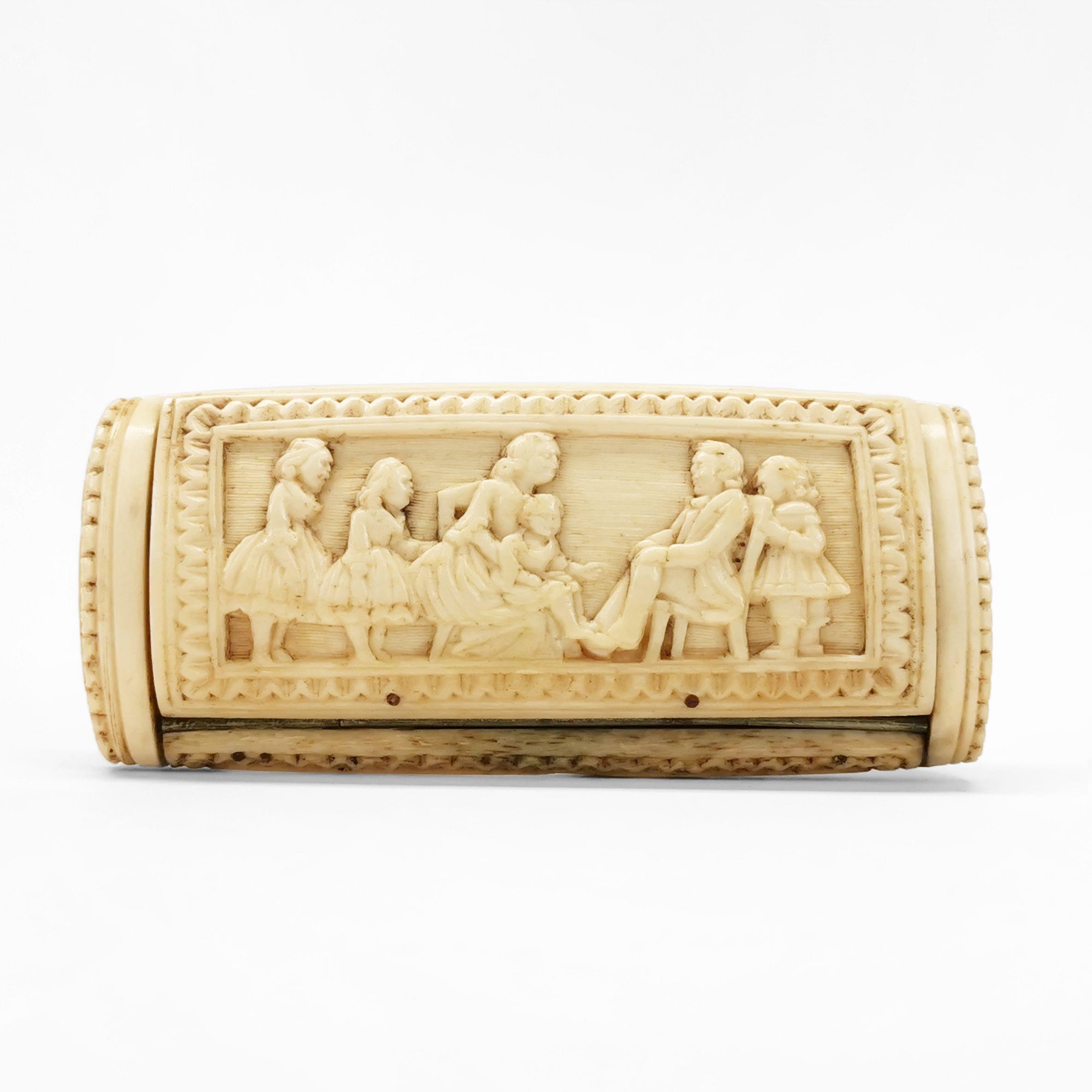 Os sculpté à motif de personnages et scènes galantes, L 10 cm