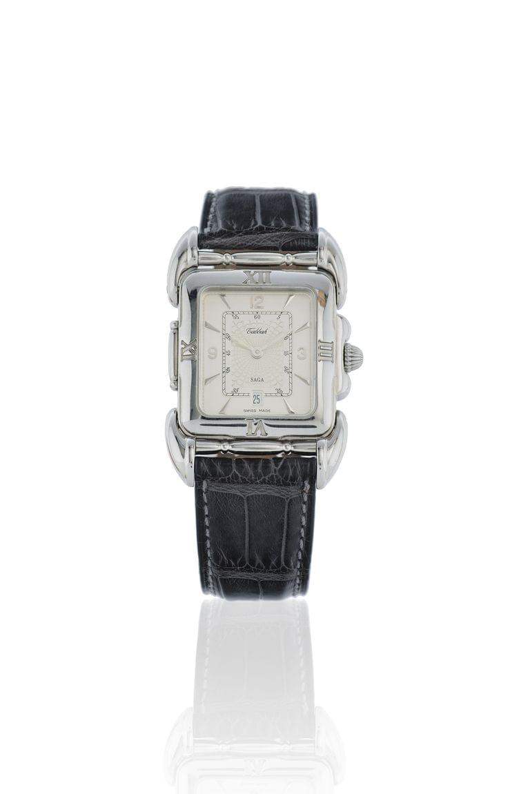 Cadran argent, date à guichet à 6h, acier, 29x29 mm