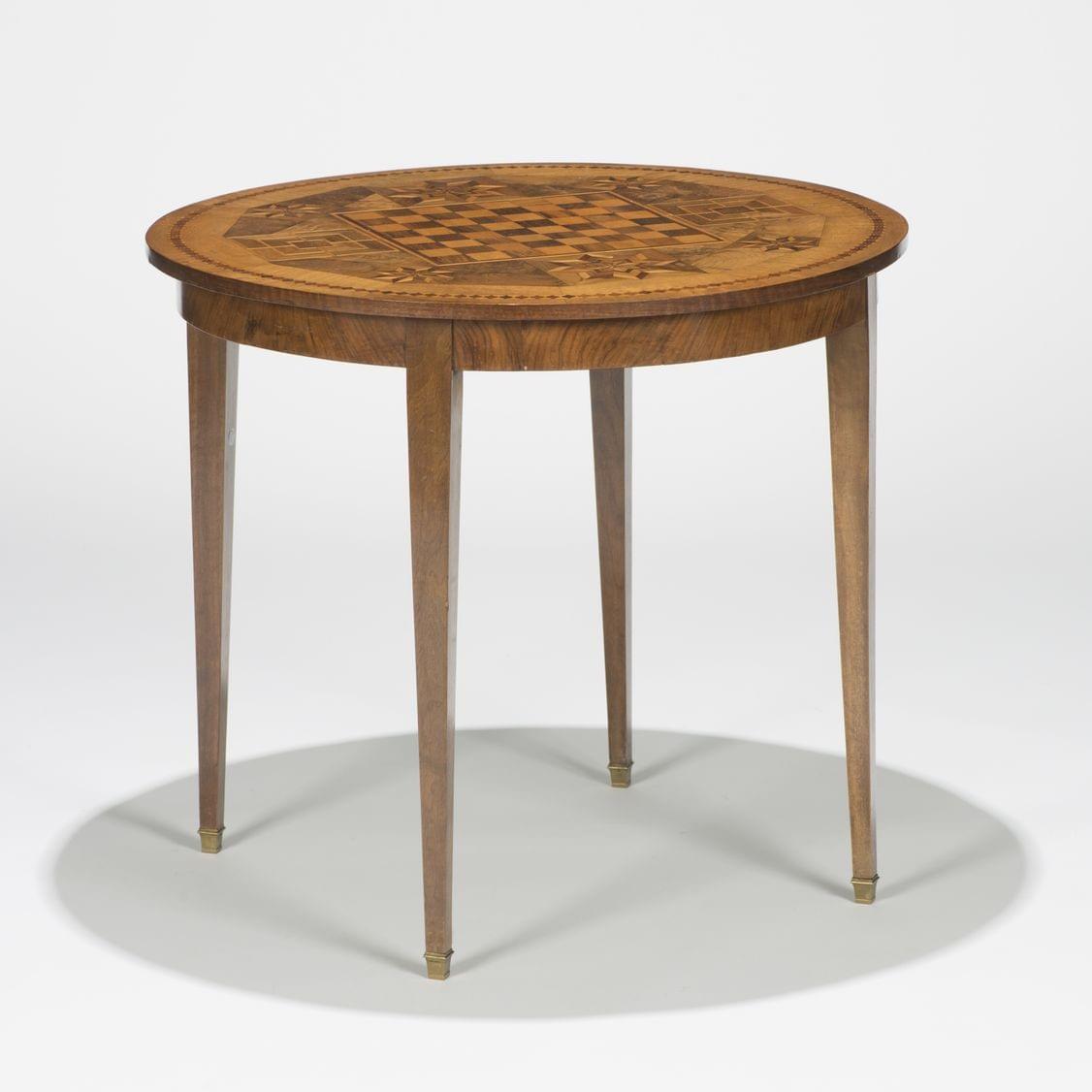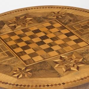 Bois fruitier à décor marqueté, Suisse, début XIXe s, 72x80 cm