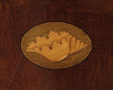 Acajou, plateau marqueté d'un coquillage, 69x89x53 cm