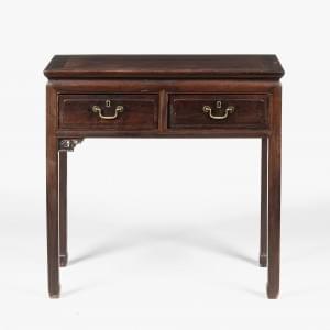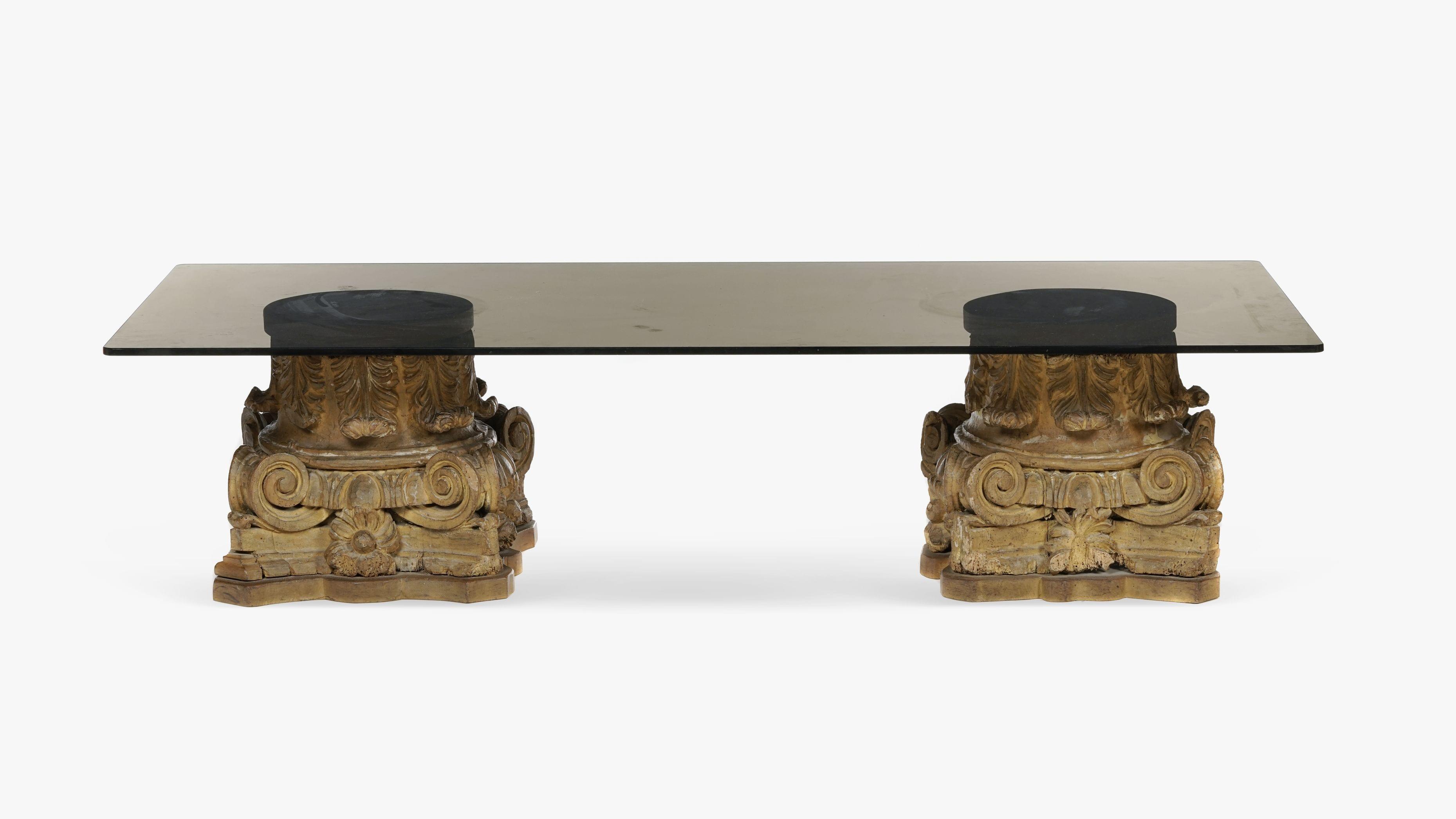 Noyer et métal cuivré, signée, 71x66x88 cm