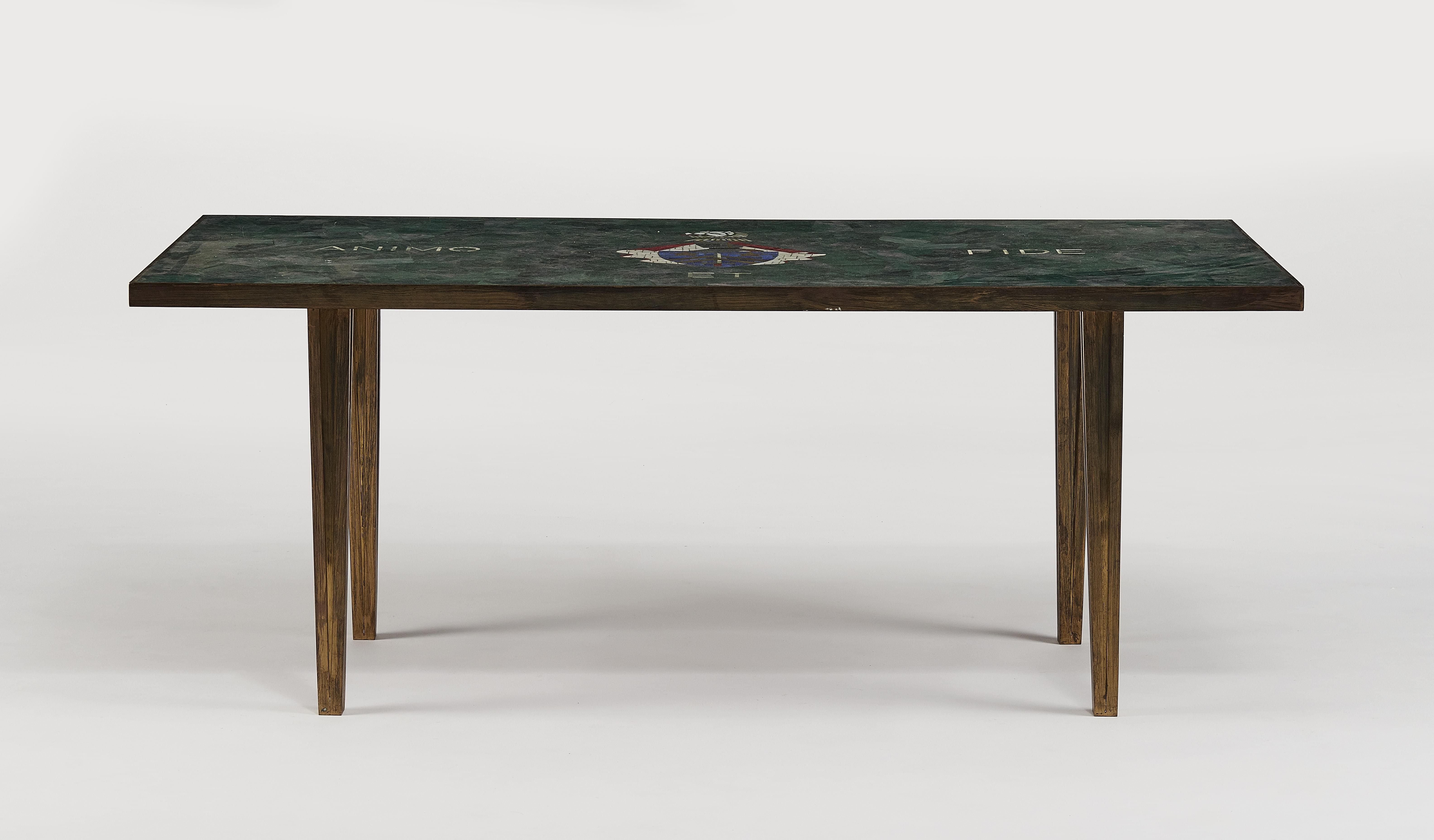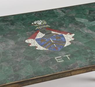 Marqueterie de bois précieux, os et nacre, 68x66x33 cm