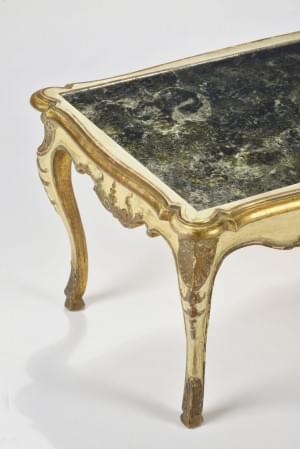 Bois doré et verre fumé, 43 x 94 x 52 cm