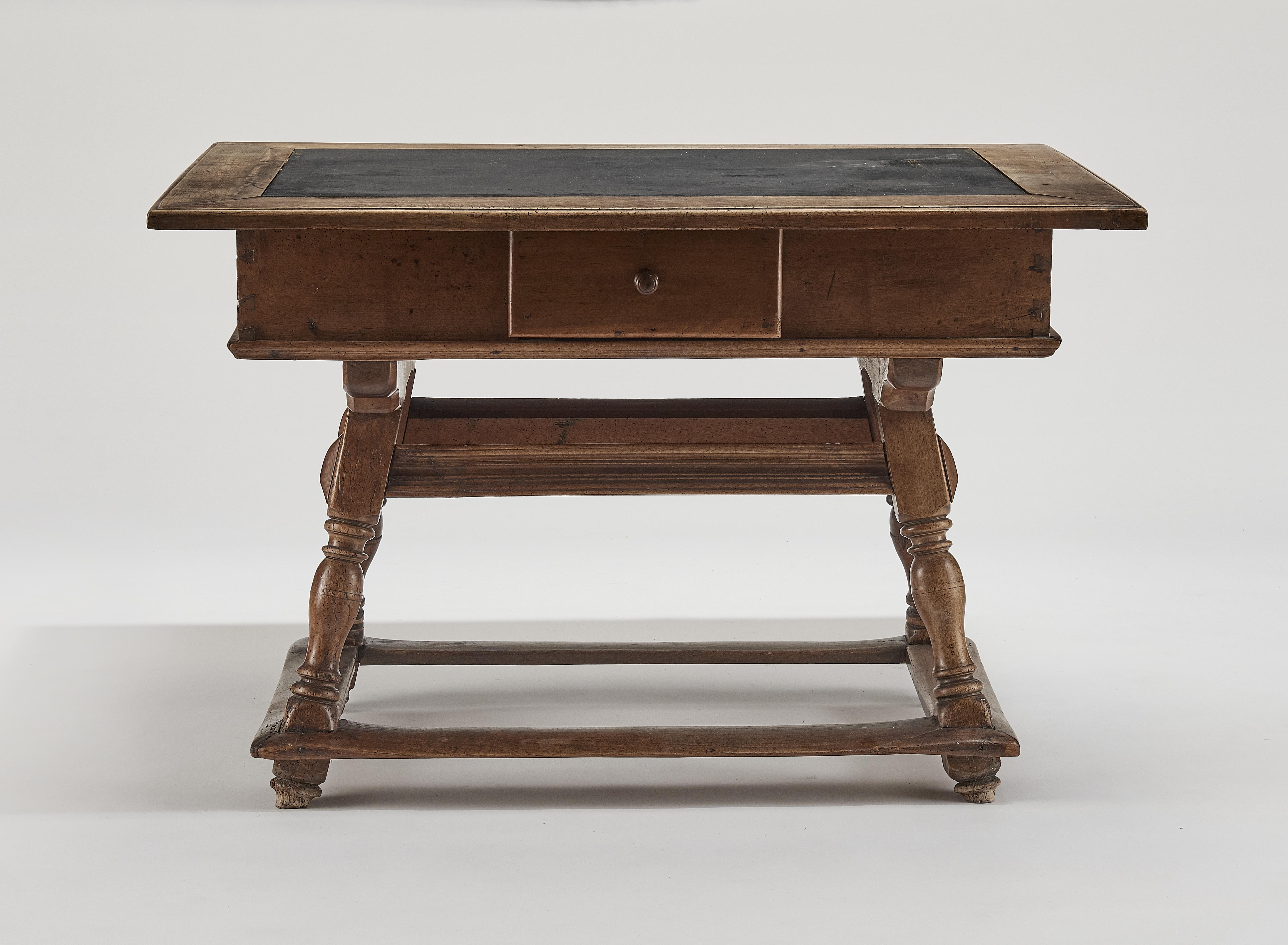 Noyer et plateau en ardoise, 75x85x115 cm