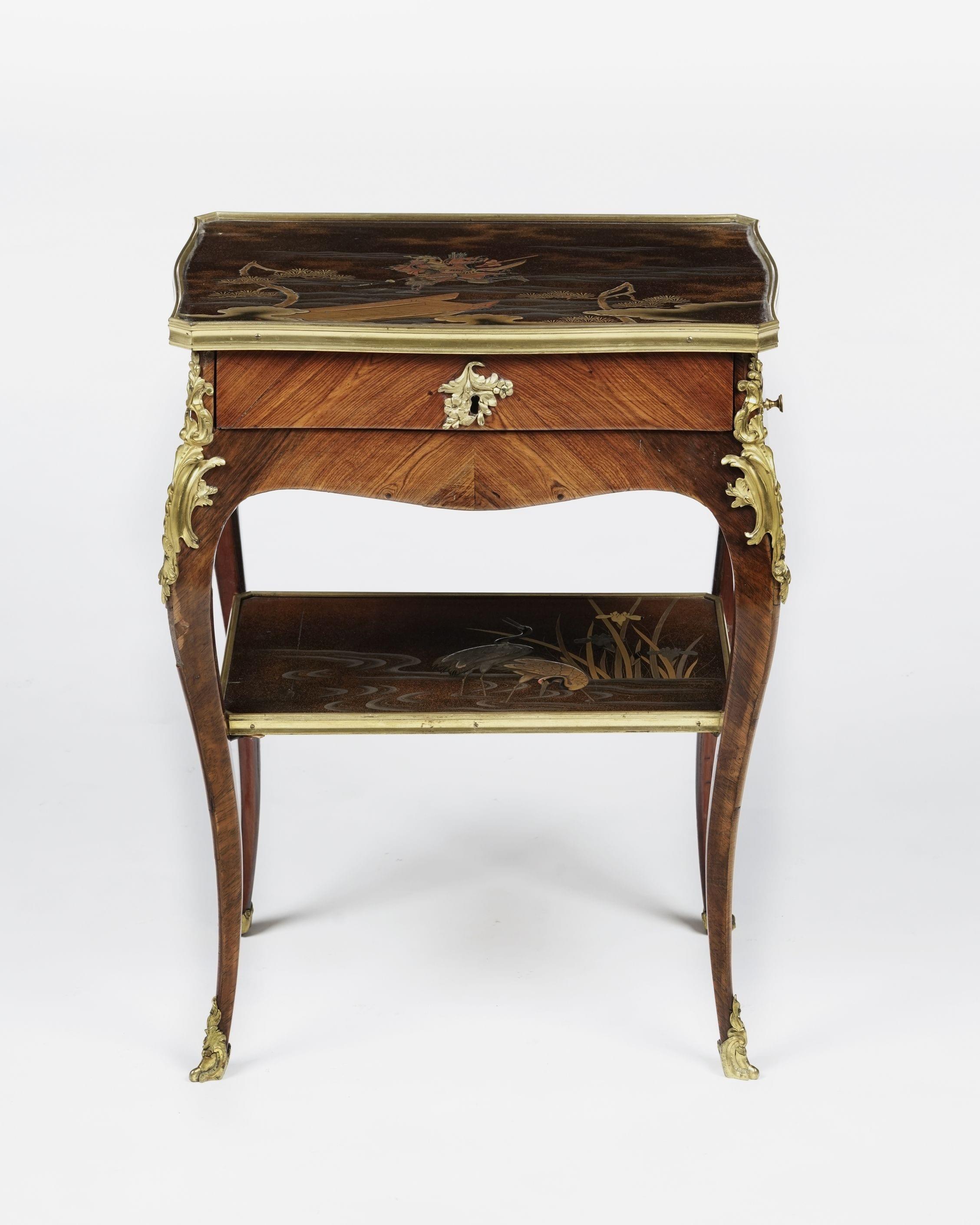 Bois de violette laqué, pieds cabriolets, 66x50x34.5 cm