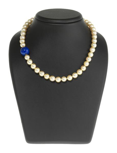 3081. Collier de perles terminé par un fermoir en losange ajouré serti...