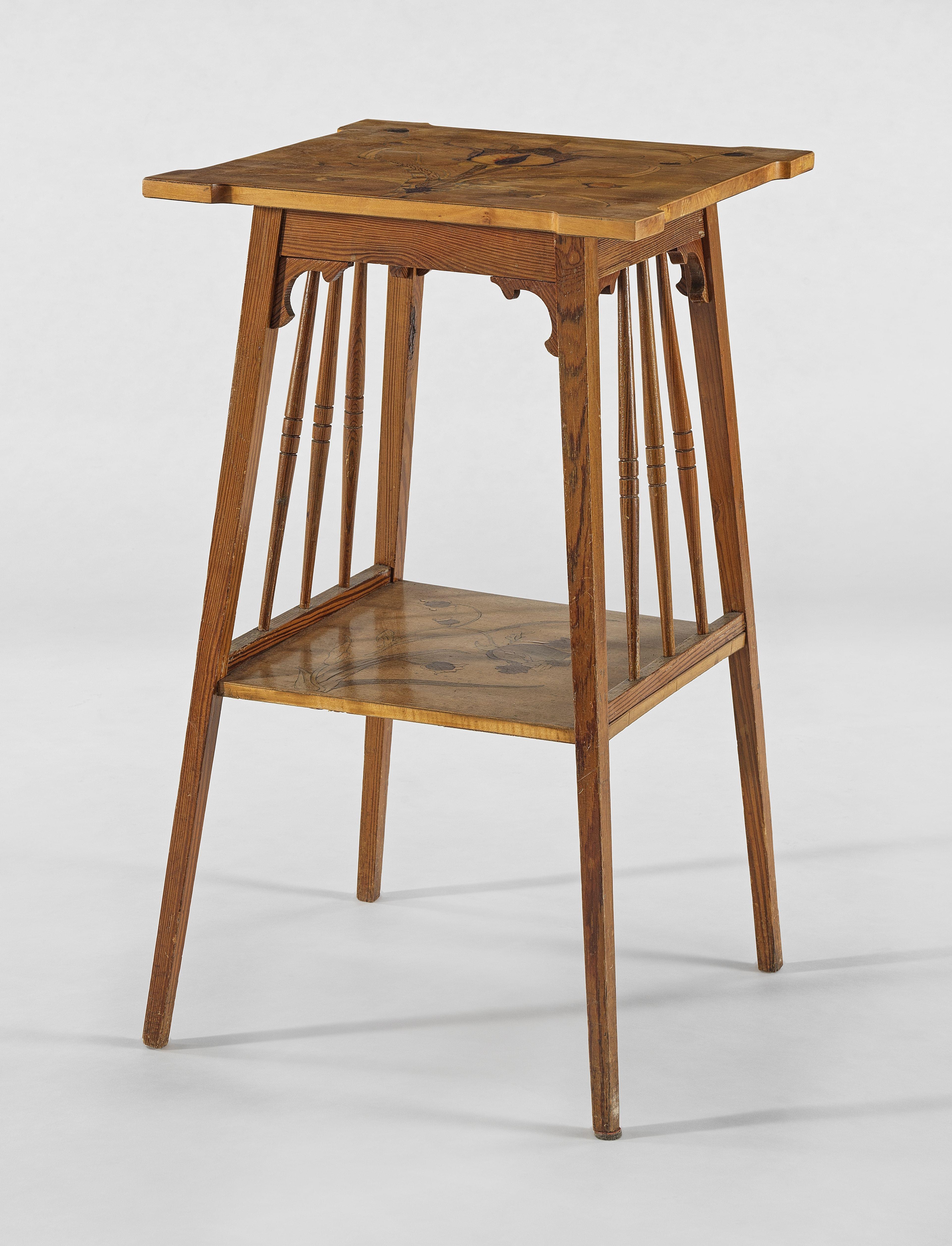 4554. Table d'époque Art nouveau à plateau à décor marqueté