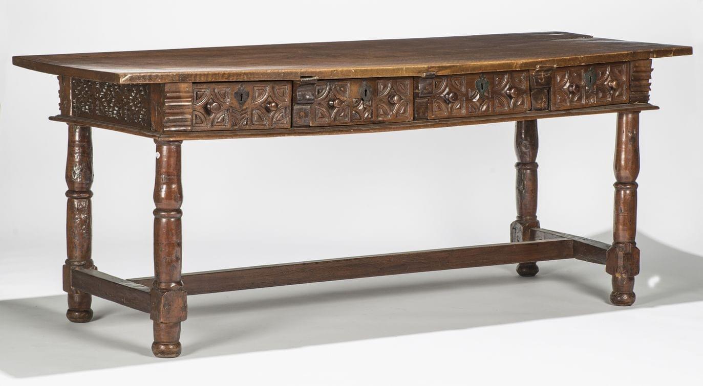 Piètement en colonnes cannelées à chapiteau corinthien, noyer sc...