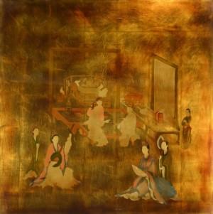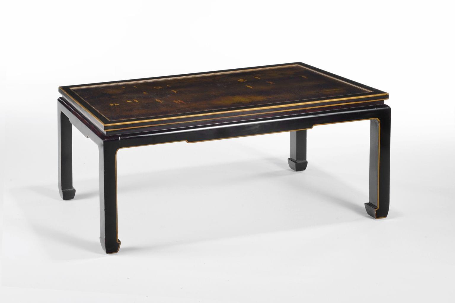 Bois laqué noir et or, Chine, XXe s, 50x100x50 cm