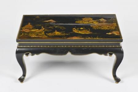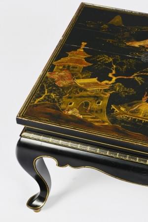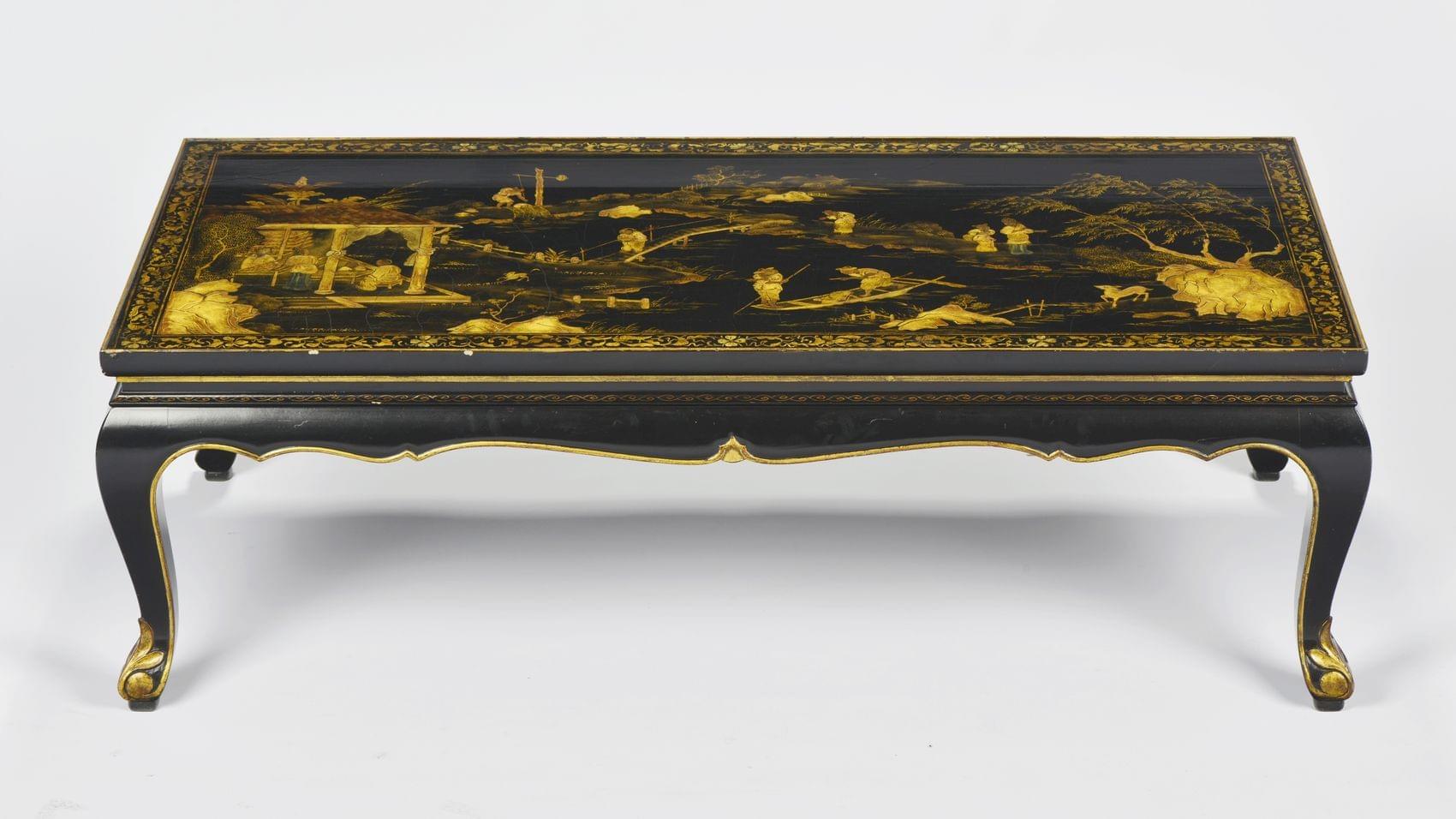 Bois laqué noir et or de scènes animées, 40x124x60 cm