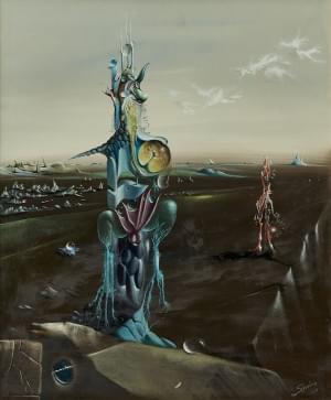 Composition surréaliste, huile sur toile, signée et datée au dos...