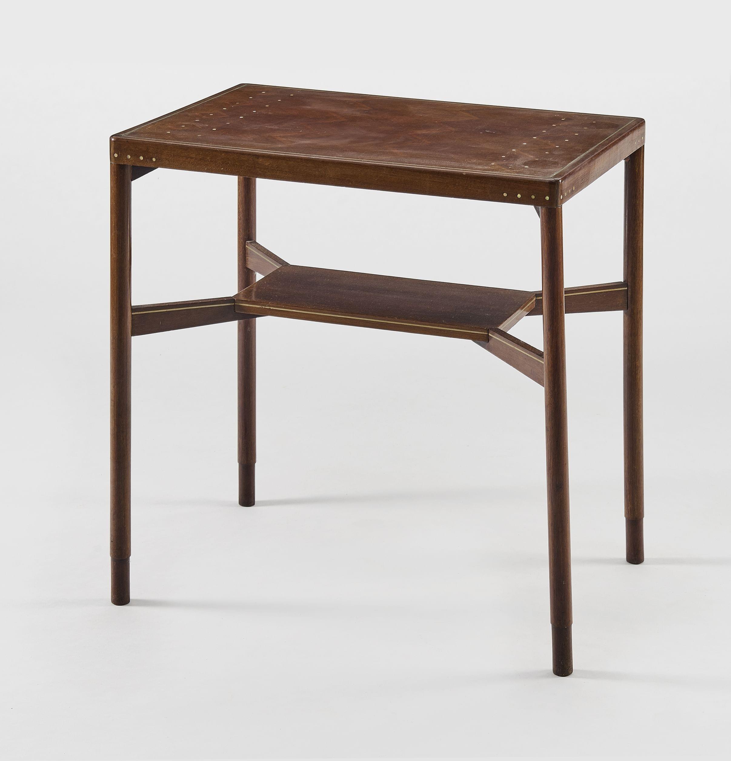 Bois au naturel, incrustations de laiton et de nacre, 70x64x45 cm