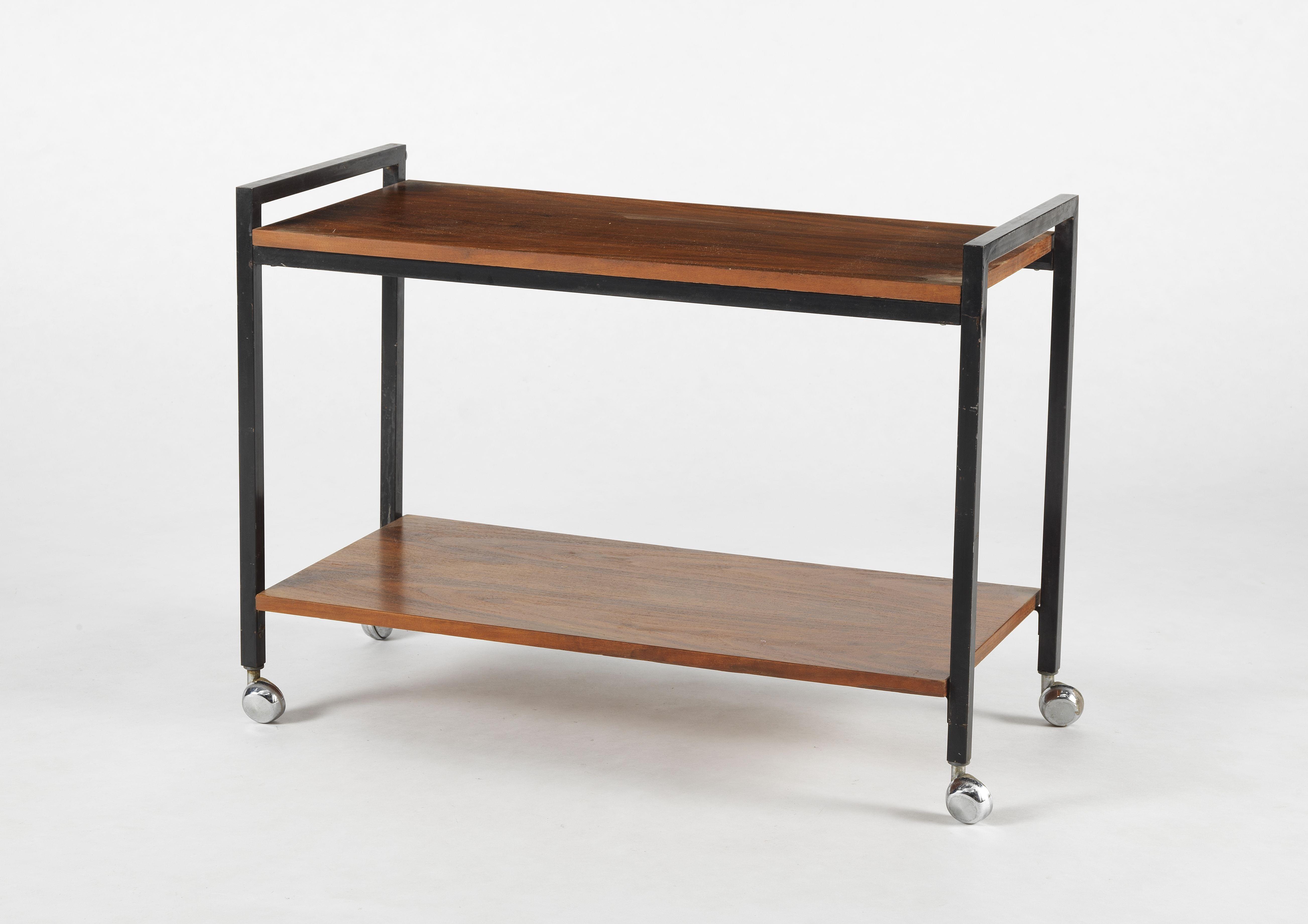 Bois et métal laqué noir, roulettes, 58x80x36 cm