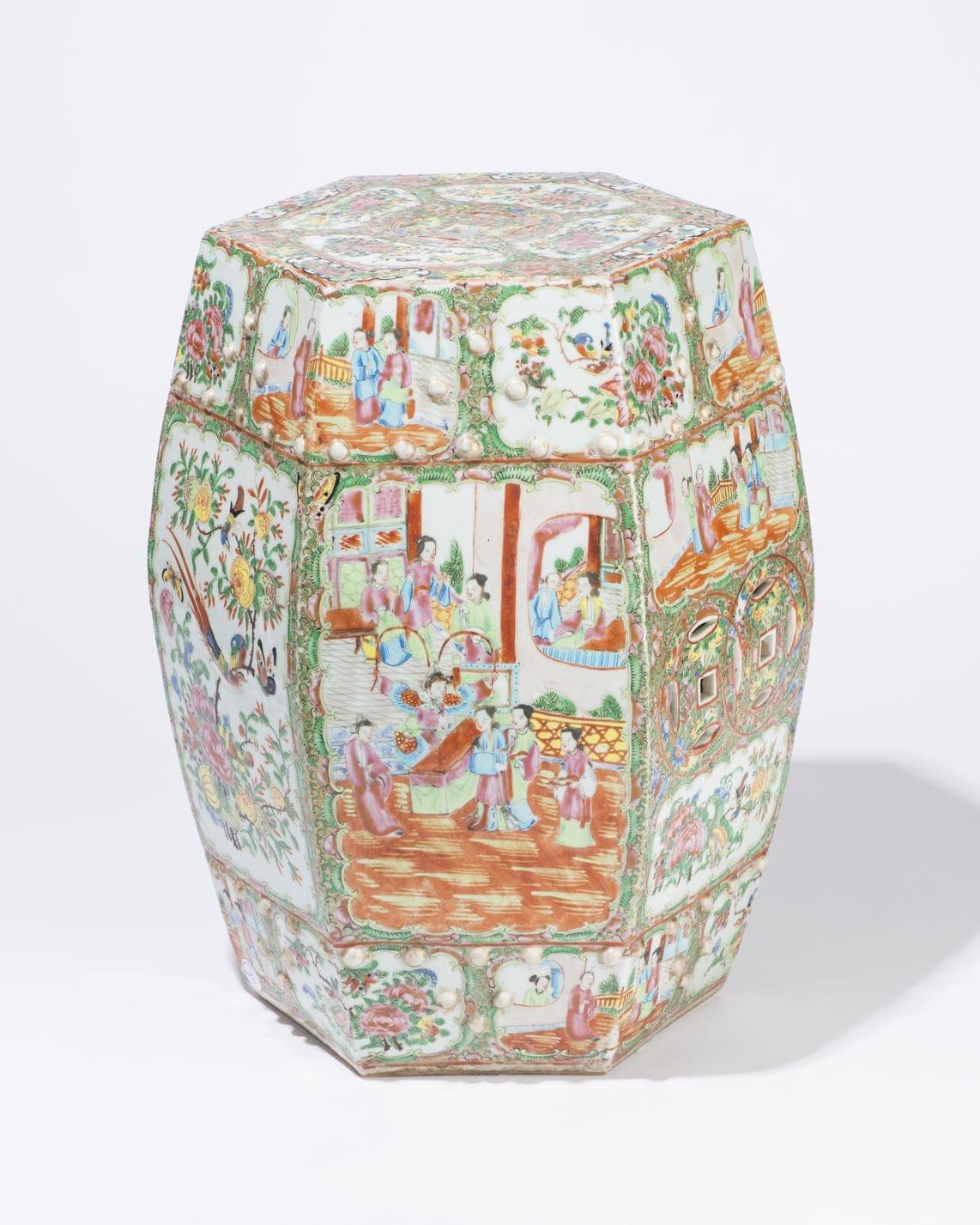 Porcelaine polychrome à décor de personnages et oiseaux, Canton, XIXe s, H 48,5 cm