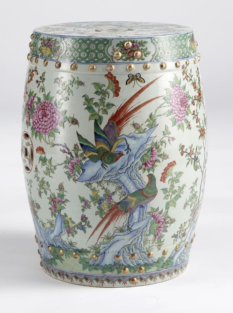 Porcelaine émaillée polychrome, à décor de volatiles et fleurs, H 47 cm
