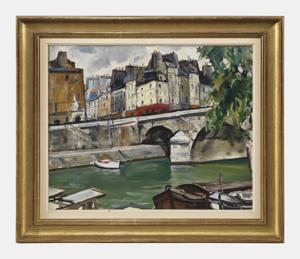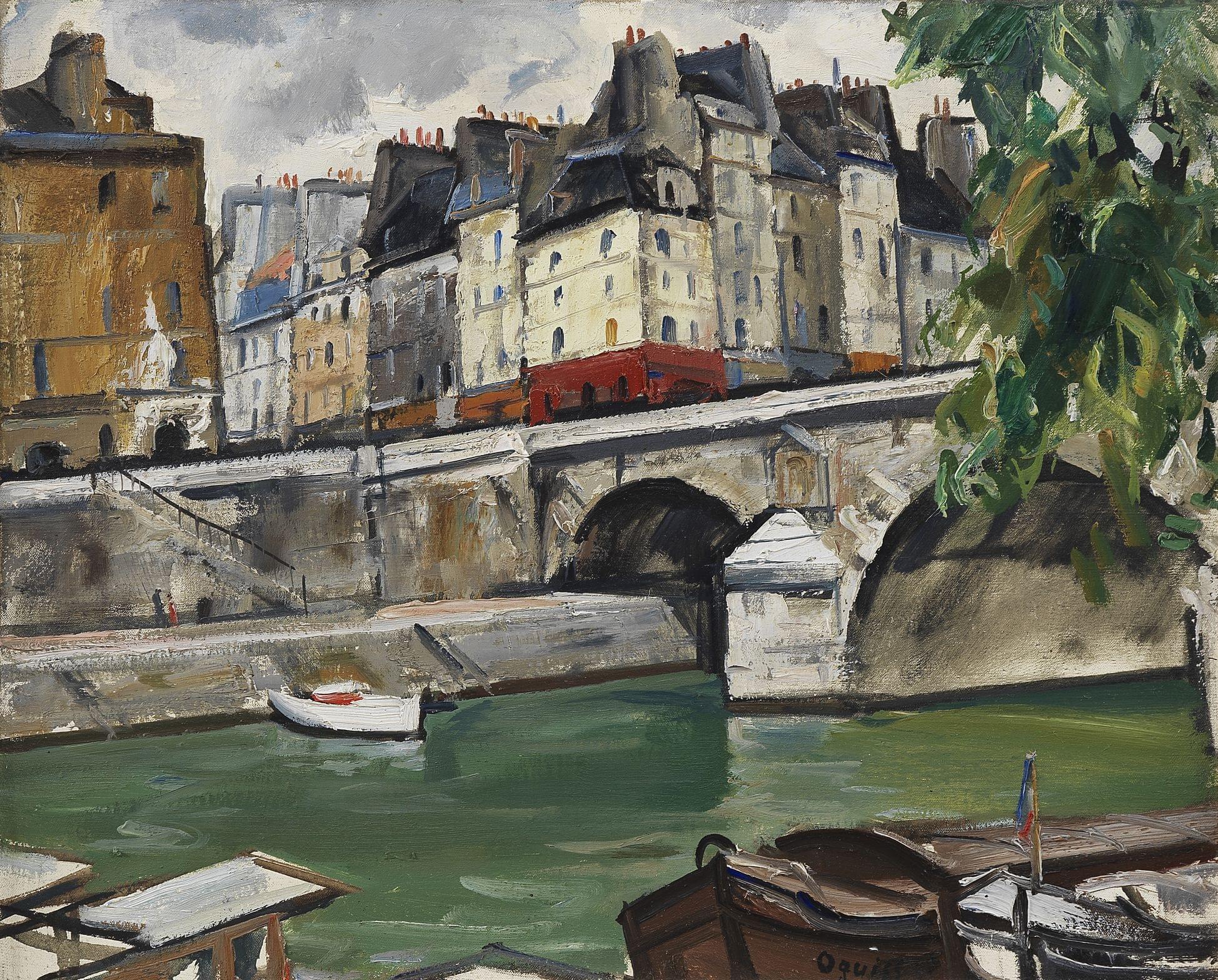 Pont-Marie, barque blanche, huile sur toile, signée, 54x65 cm.Exposition: Musée Rath de la Ville de Genève en 1960, #88. Nous remercions l'association des amis d'Oguiss pour nous voir confirmé l'authenticité de cette oeuvre. Un certificat écrit et signé par Madame E. Oguiss Halpern pourra être demandé auprès de l'association par l'acquéreur.