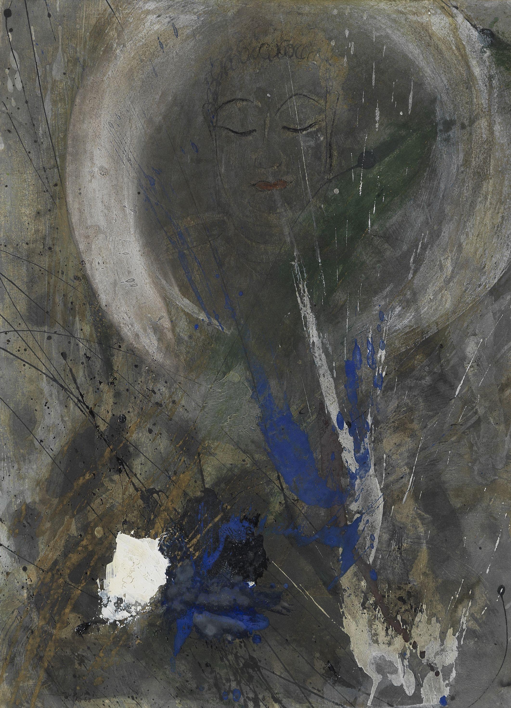 Bouddha, technique mixte sur papier, signée et datée 1963, 53x40 cm