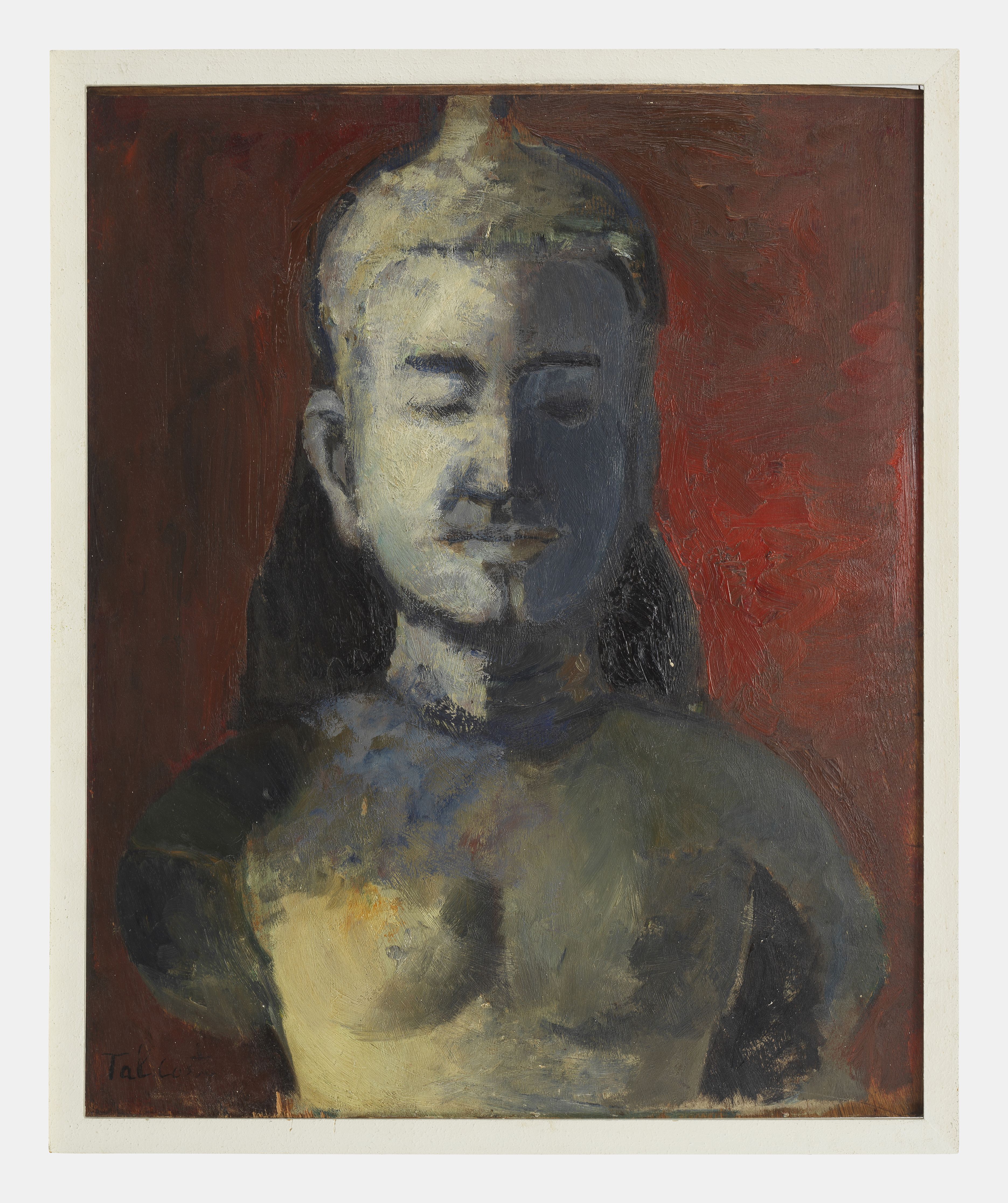 Tête de divinité, huile sur carton, signée, 59,5x50 cm