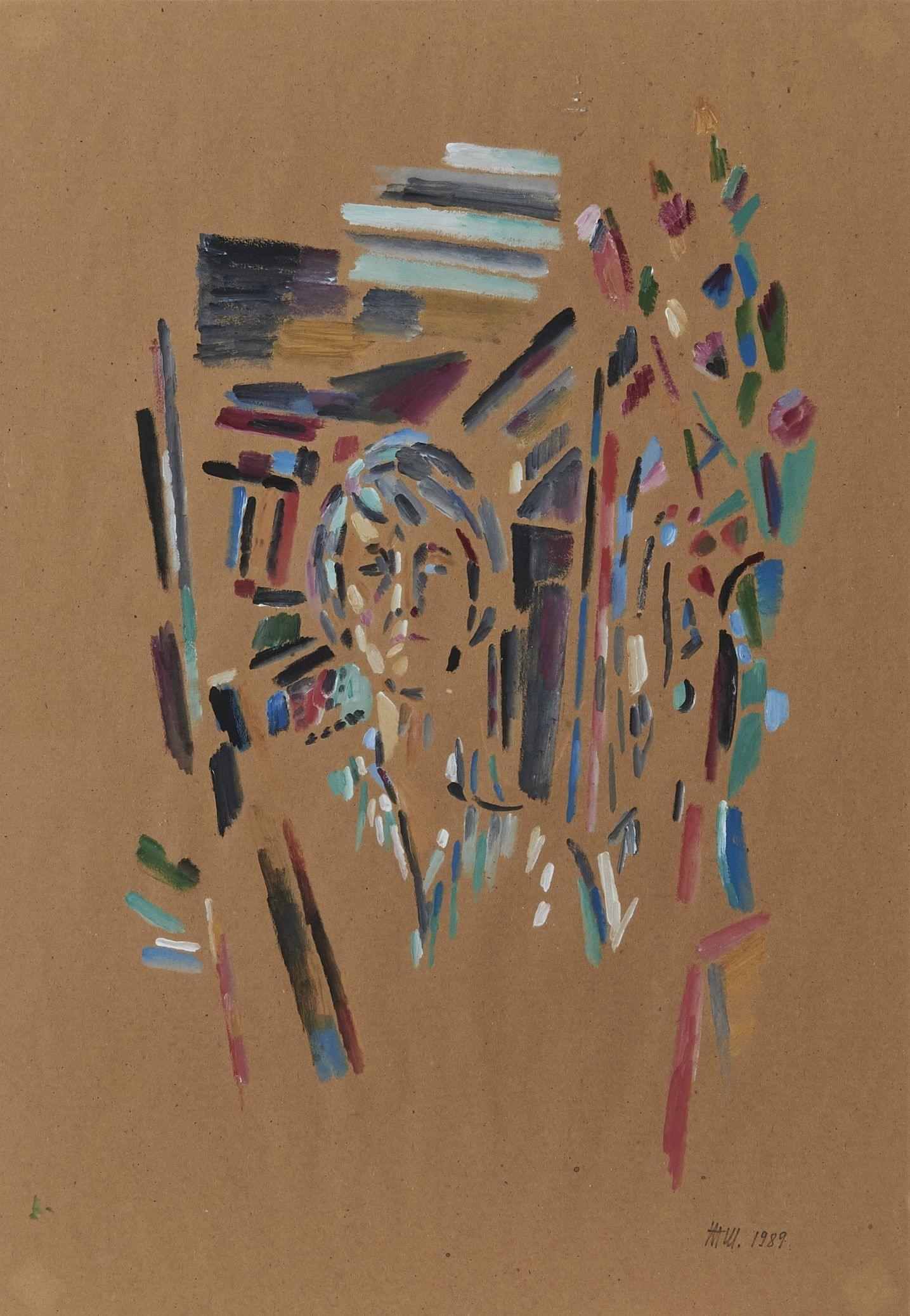 Jeune femme, gouache sur papier, signée et datée 1989, 58x41 cm