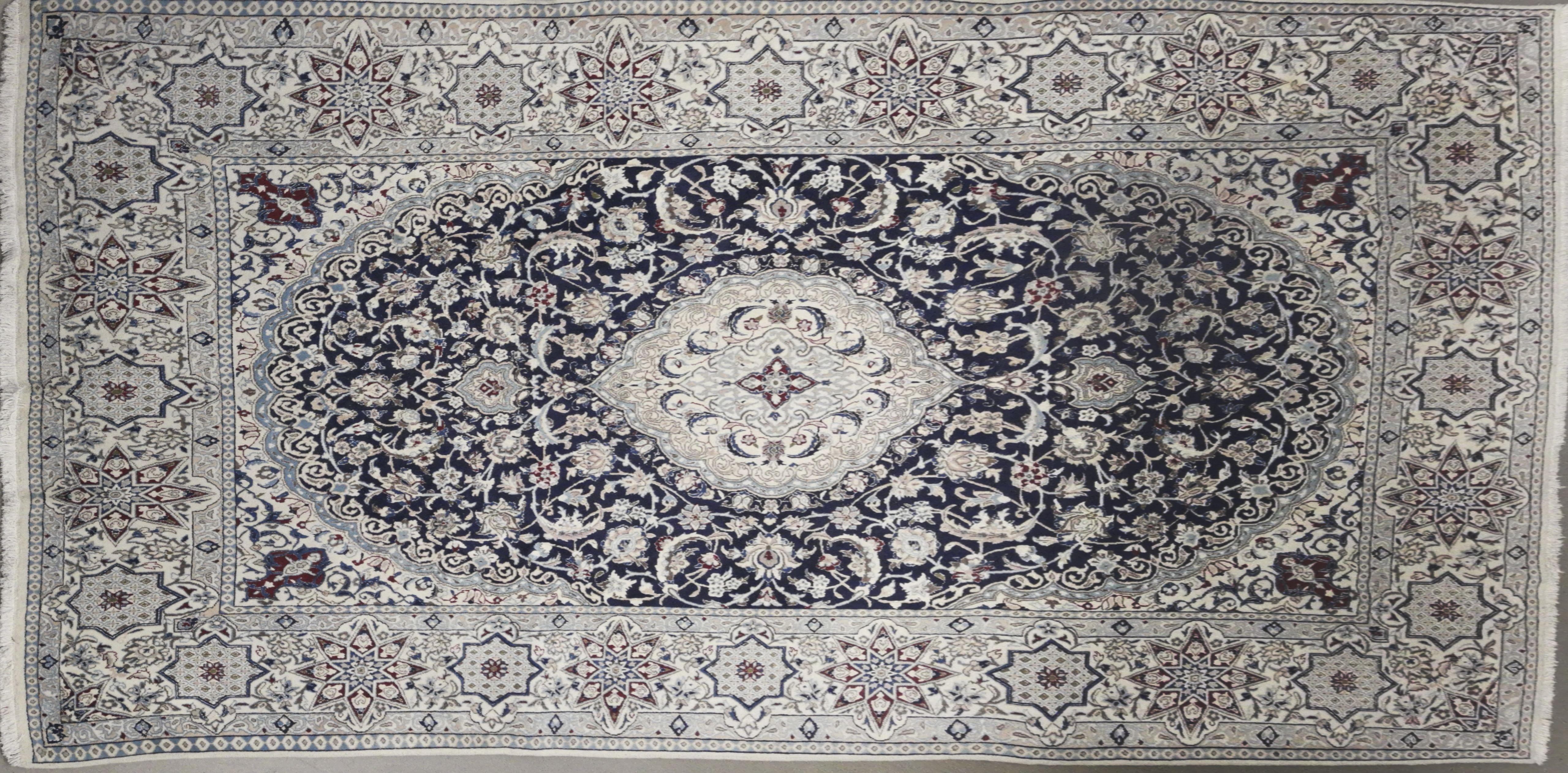 A décor d'un médaillon central bleu sur fond beige, 352x245 cm