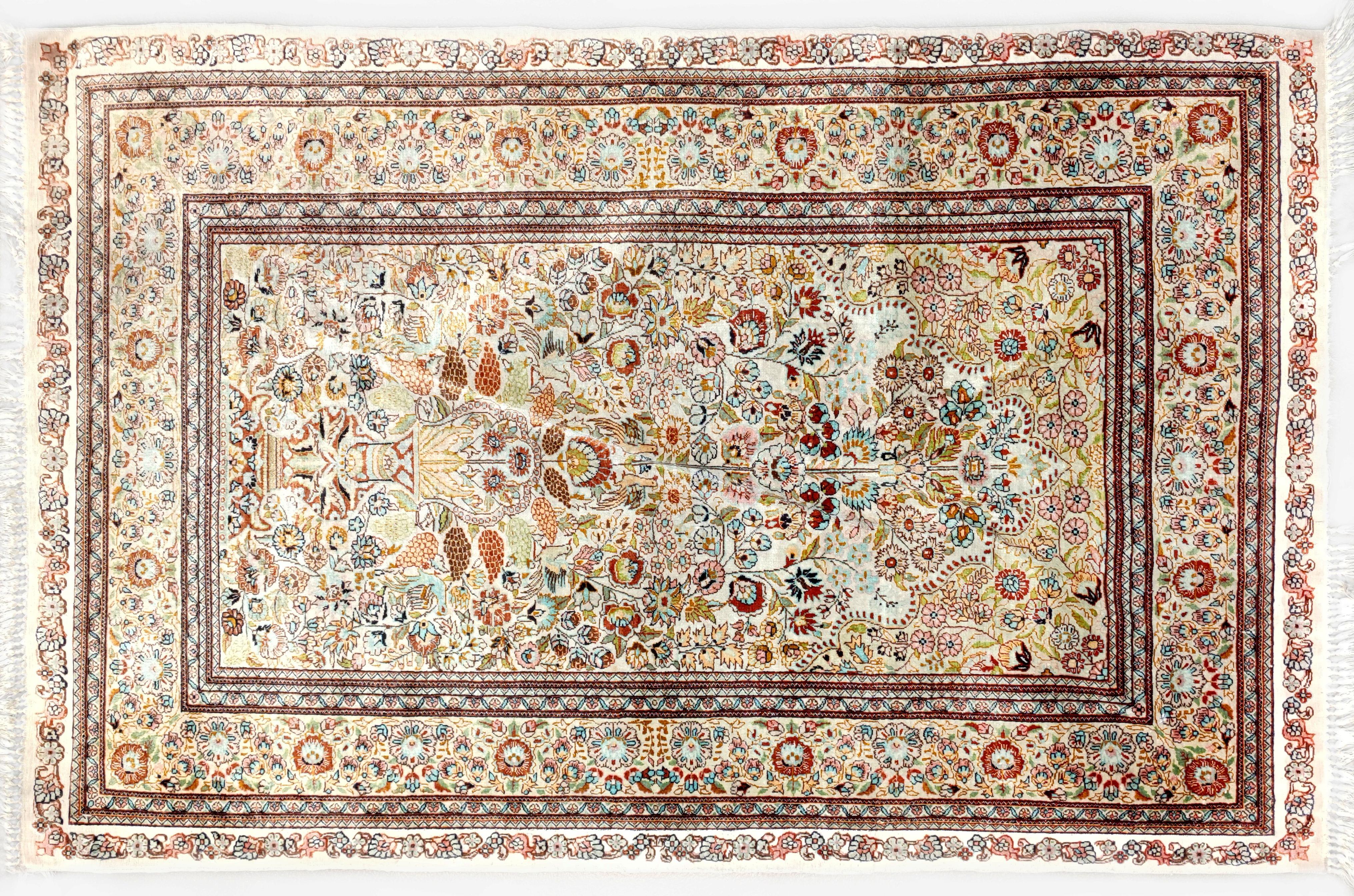 Laine et soie à motifs de rinceaux et oiseaux, bordure à décor d...