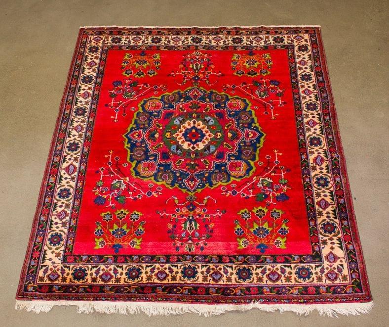 milieu XXe s, médaillon central sur fond rouge brique entouré au...