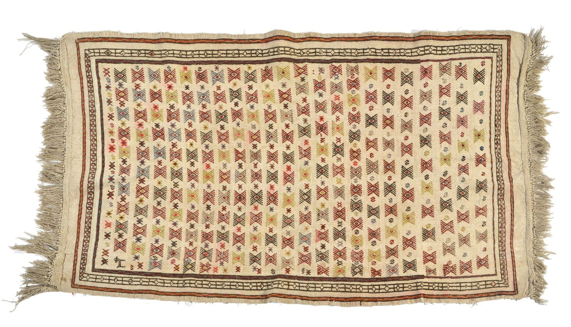 milieu XXe s, médaillon central sur fond rouge brique entouré au...