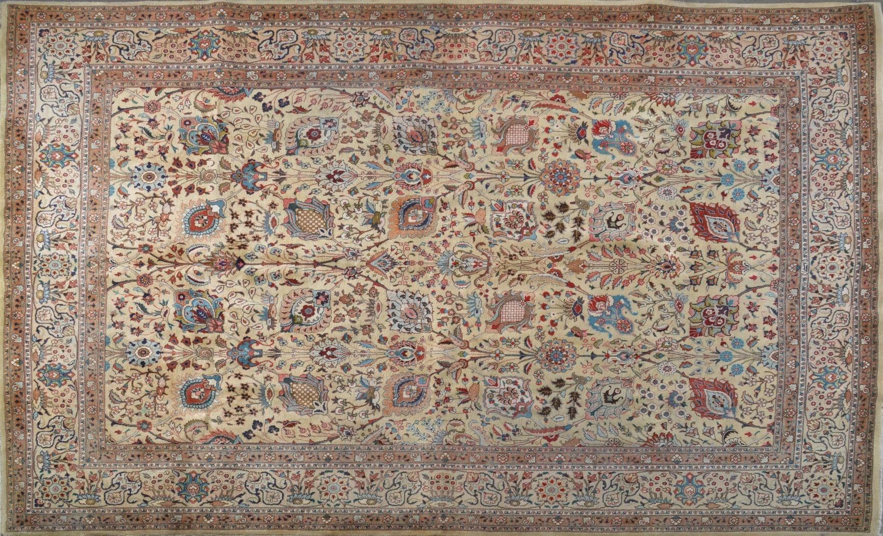 Laine à décor de motifs floraux sur fond beige, 394x299 cm