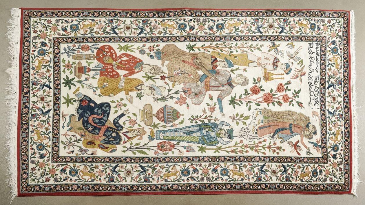 A décor de médaillon central vert clair et rouge sur fond abrico...