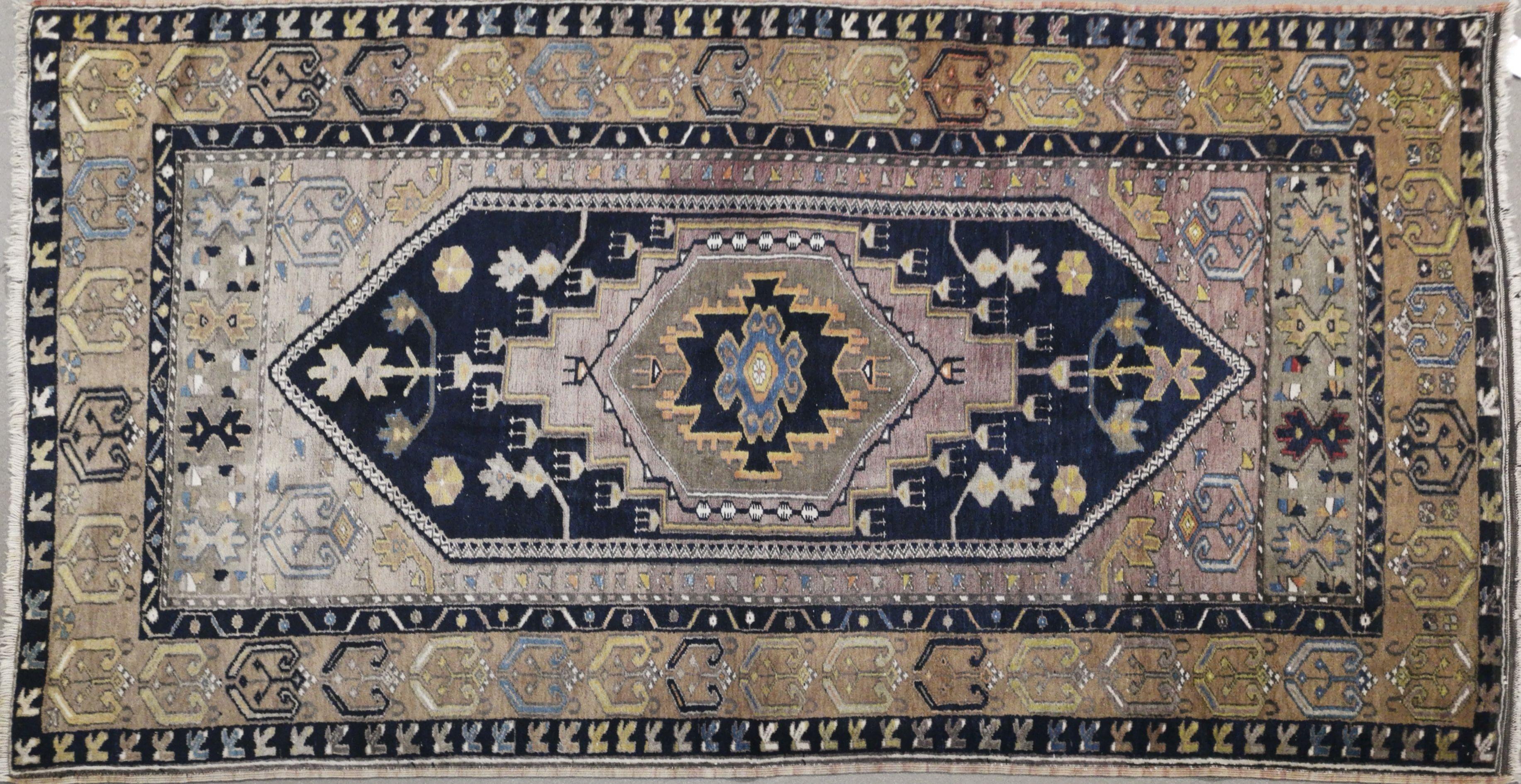 A décor d'un médaillon hexagonal sur fond bleu nuit, 218x112 cm. Provenance: collection Pernet-Villaverde
