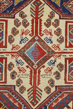 A motifs de losanges sur fond ivoire, laine, 193x140 cm