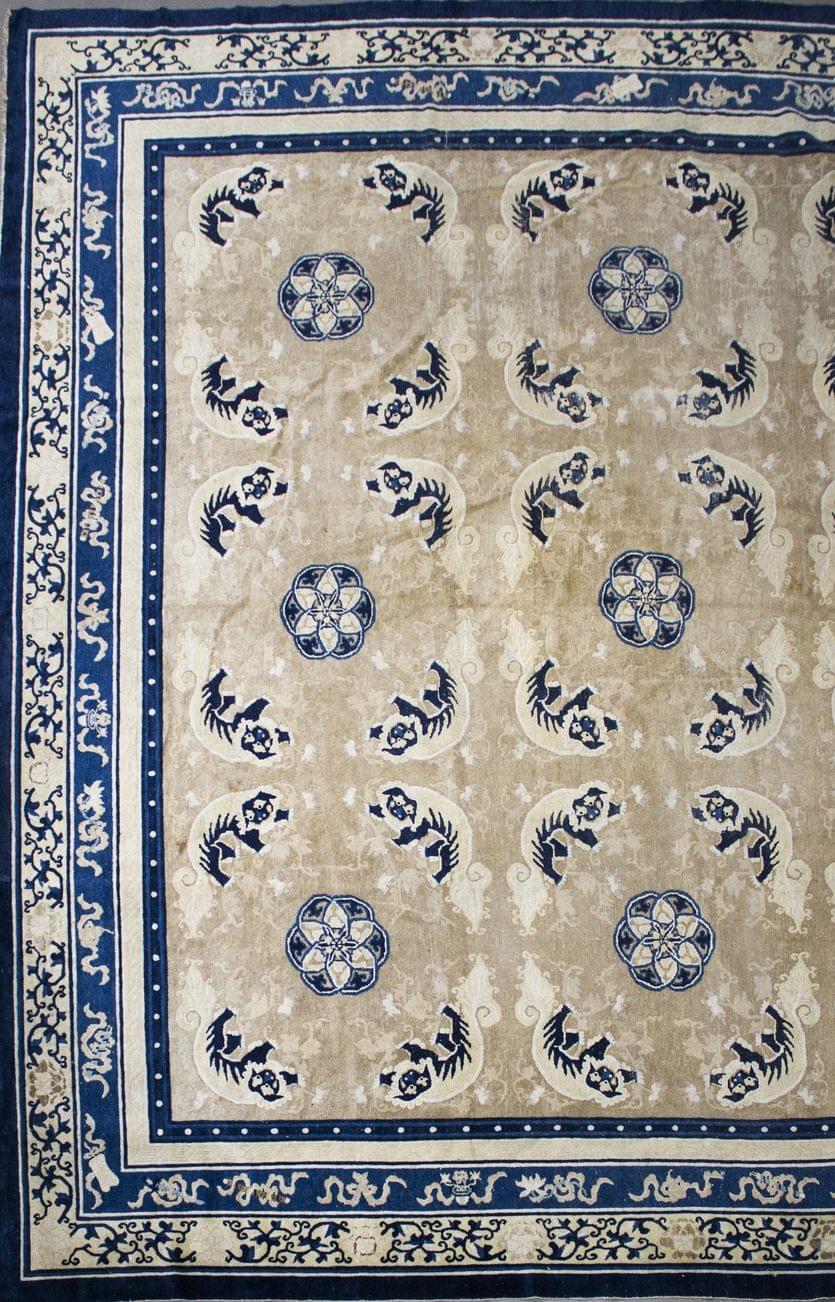 A décor de fleurs et fleurons sur fond bleu beige, bordure sur f...