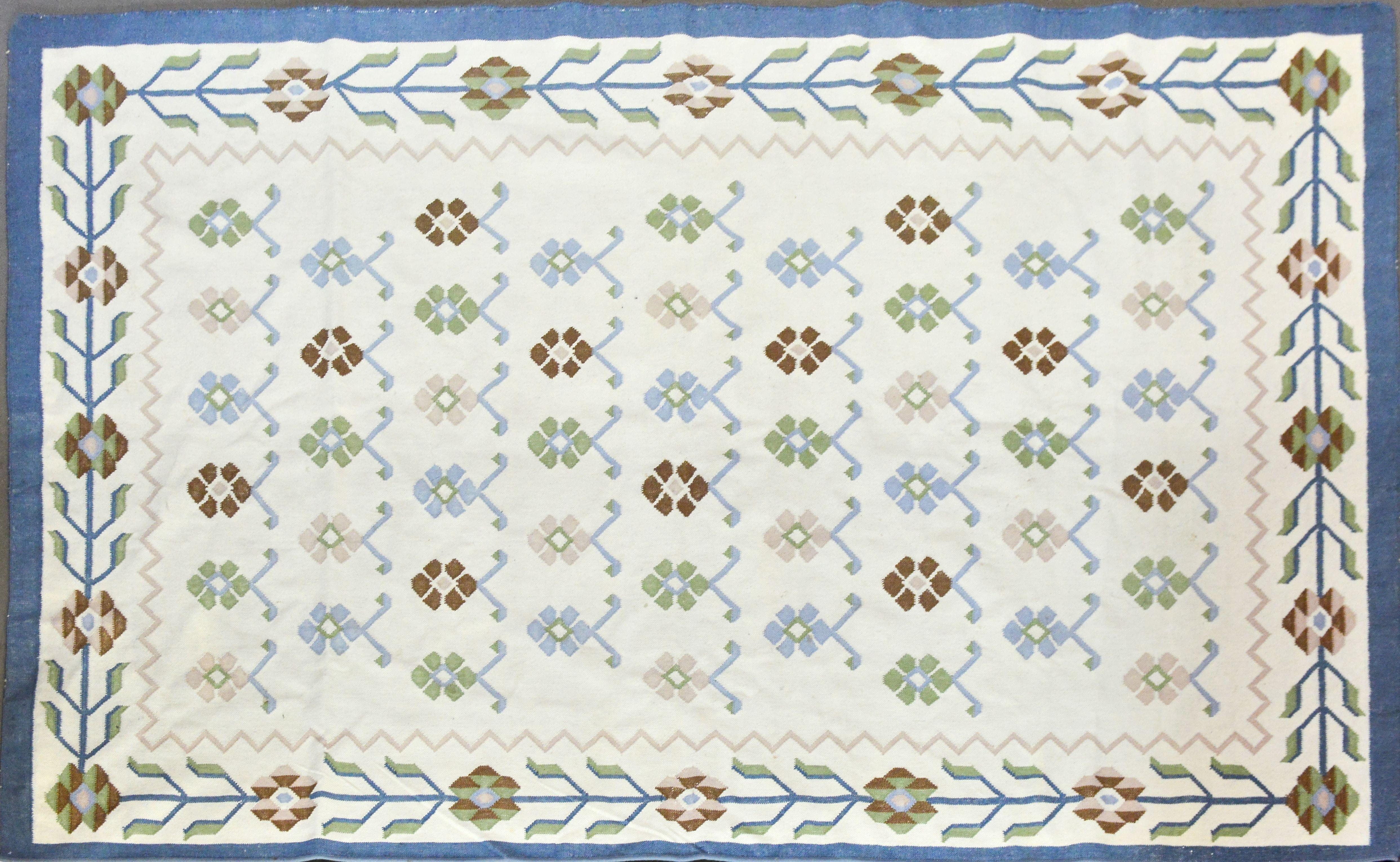Laine à motifs stylisés et floraux sur fond beige, 300x190 cm