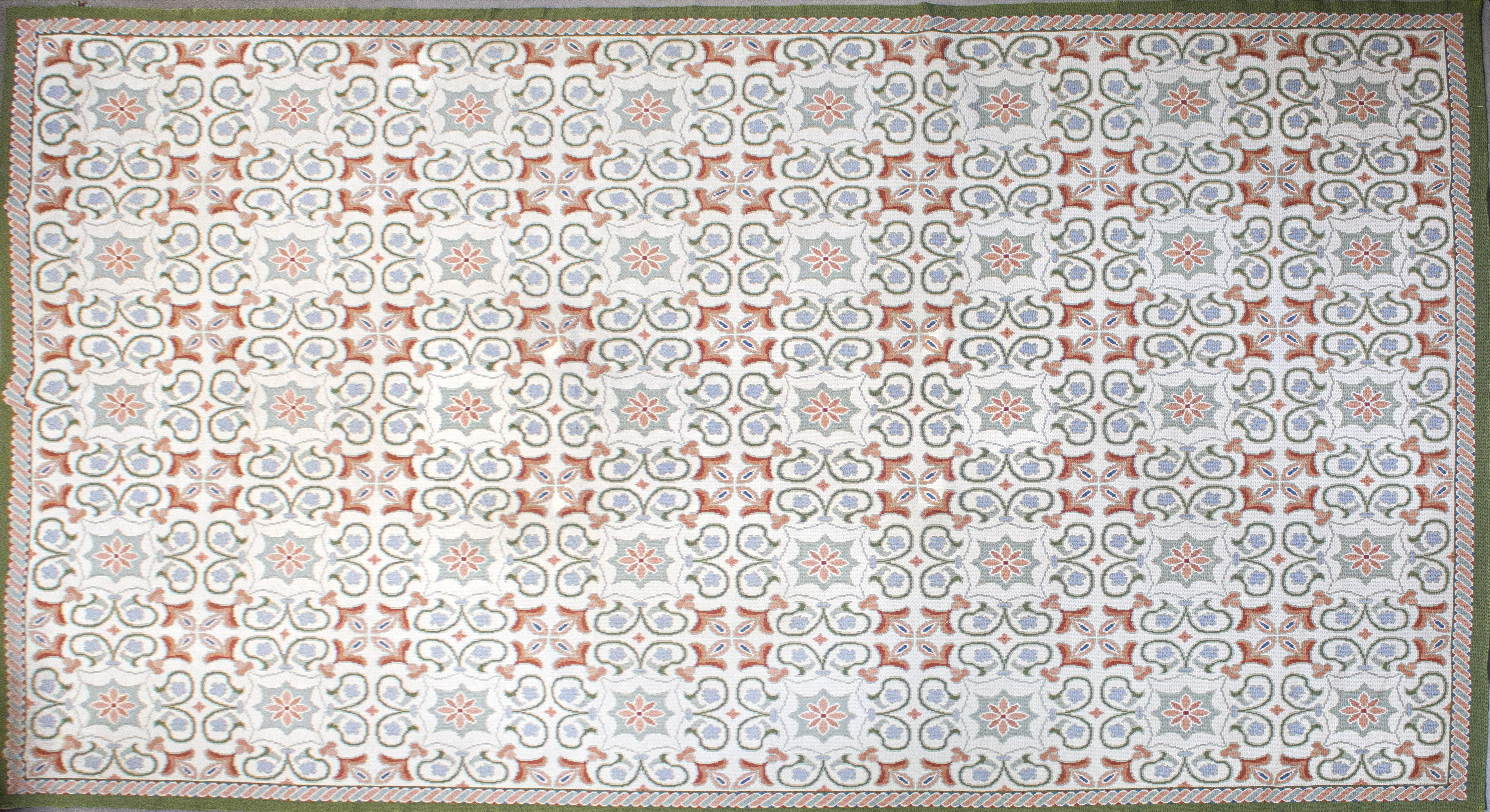 Laine à décor de motifs géométriques et stylisés sur fond beige, 420x285 cm