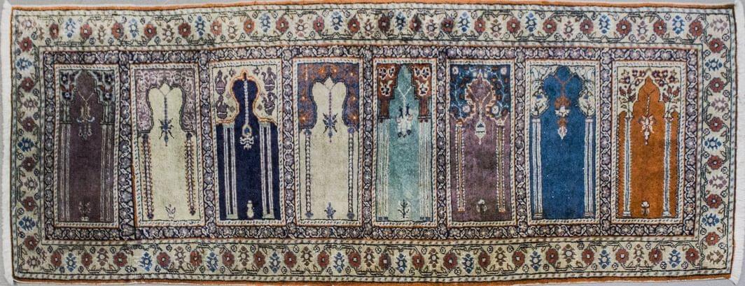 A décor de personnages sur fond crème, laine, 238x137 cm