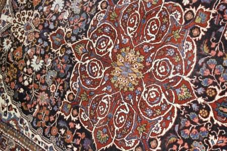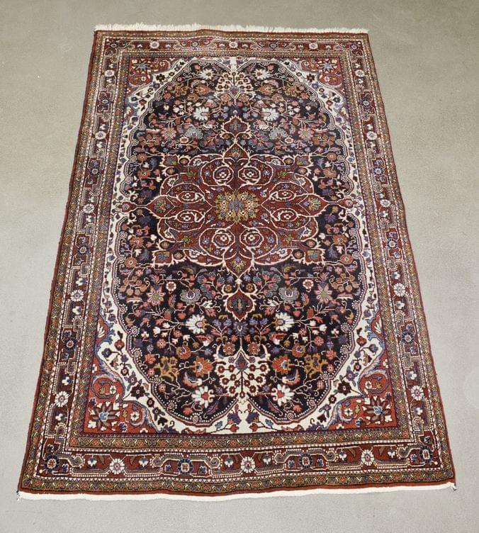 milieu XXe s, médaillon central sur fond rouge brique entouré au...