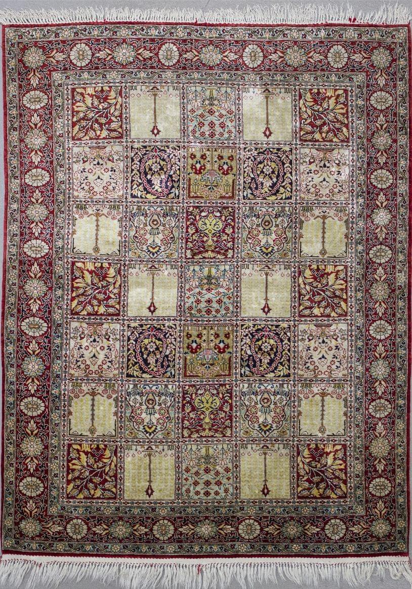 A décor de rinceaux sur fond crème, laine/soie, 165x105 cm