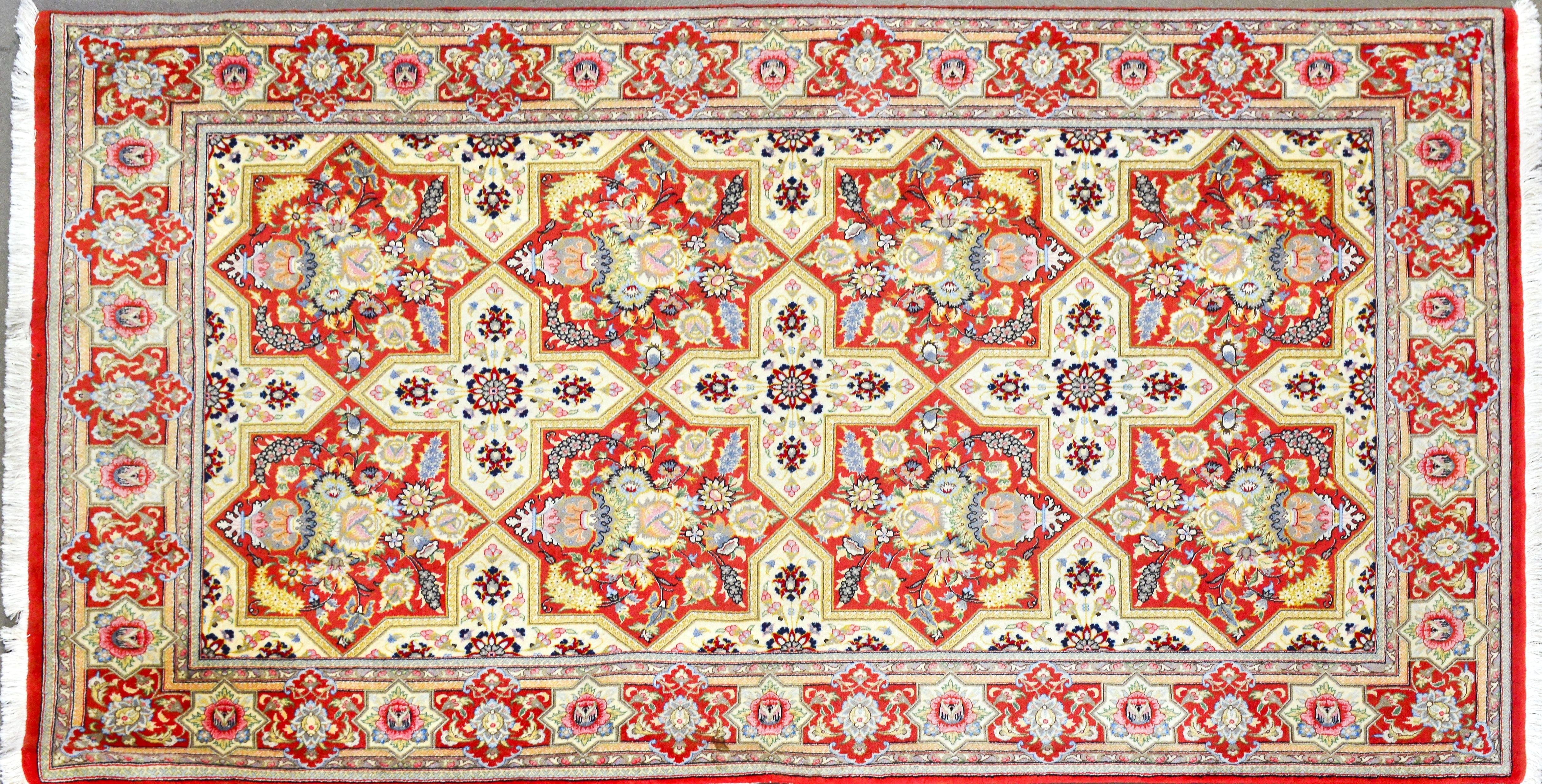 A décor de médaillons étoilés sur fond rouge, 217x136 cm