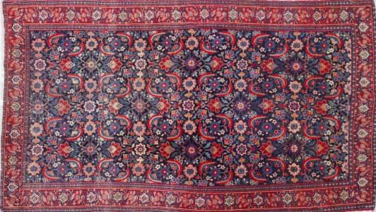 A décor d'un semis de médaillons sur fond rouge, bordure à motif...