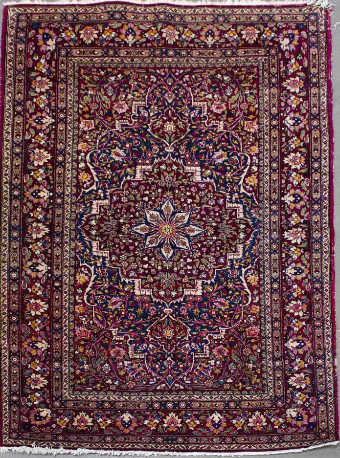 Laine à motifs verts, orange et jaunes sur fond crème, 291x291 c...