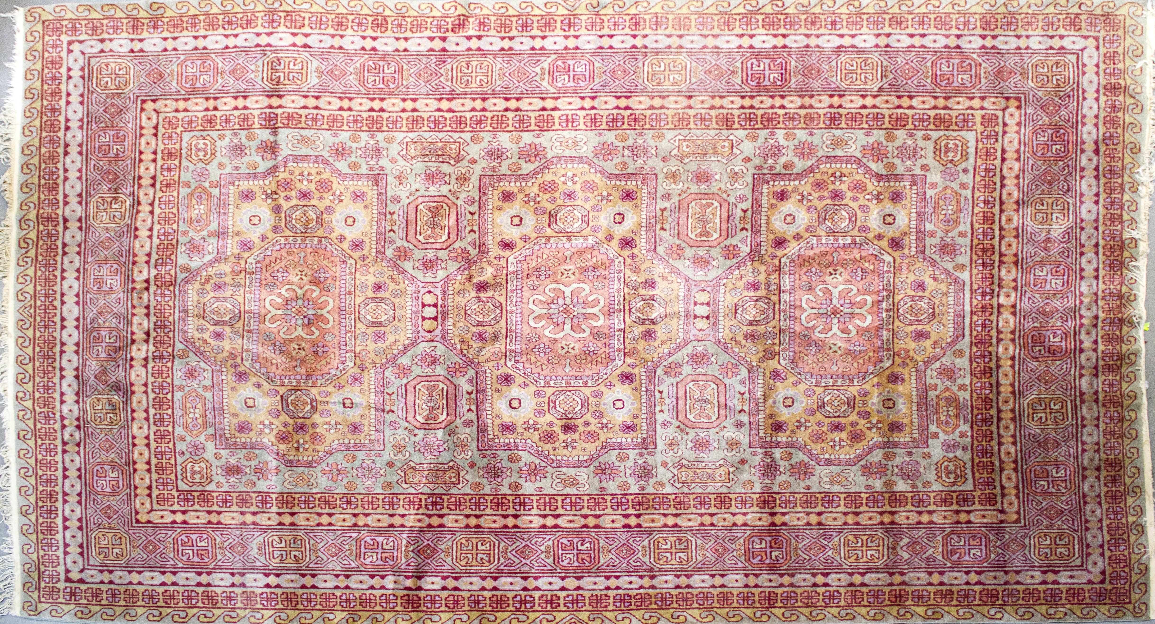 Laine à décor de motifs géométriques sur fond crème, 360x266 cm