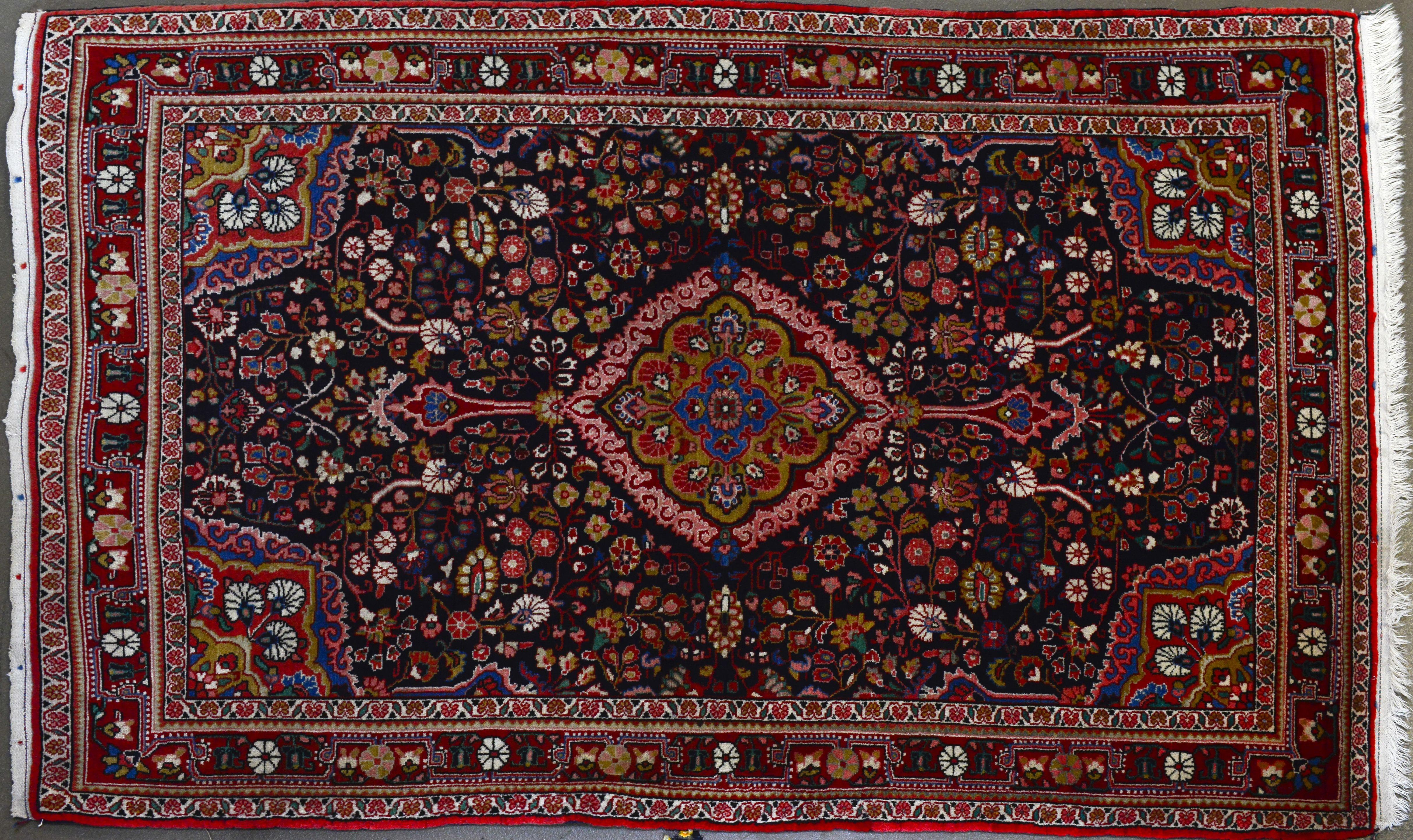 Laine à décor d'un médaillon central sur fond bleu, 170x113 cm