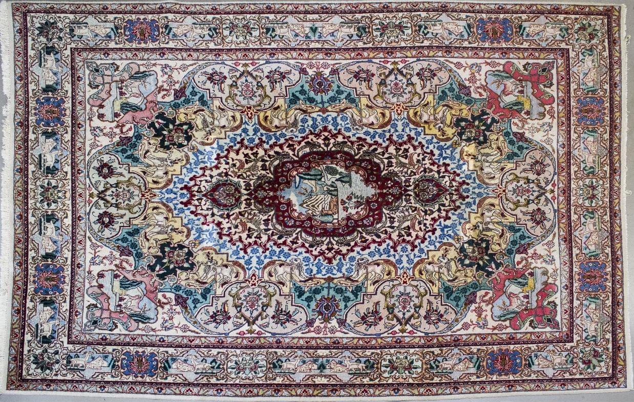A décor d'un médaillon central à décor d'un paysage et d'animaux en réserves, 398x290 cm